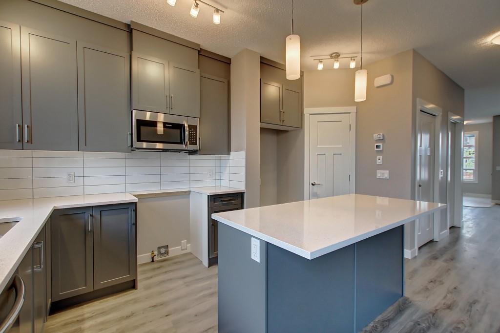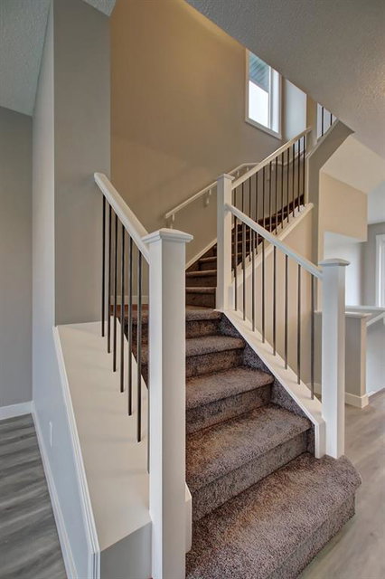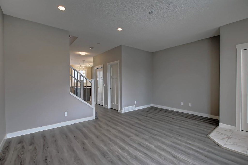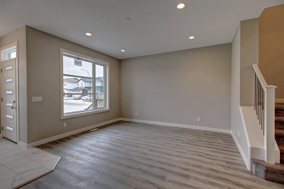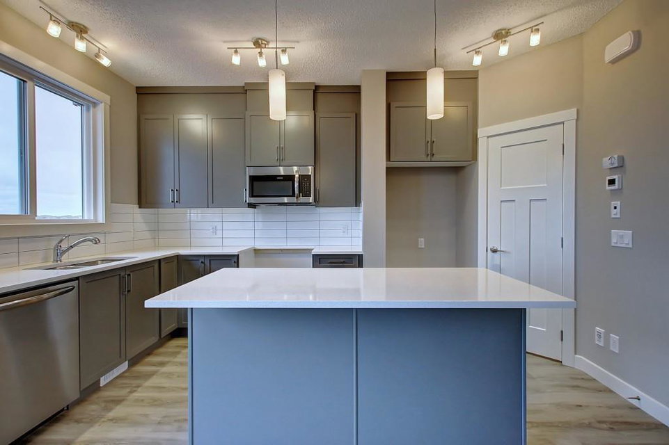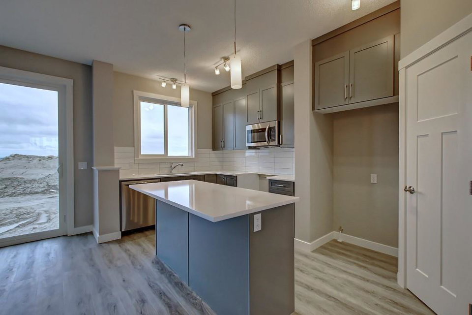 PURCHASE BEFORE END OF JUNE & GET FREE GARAGE! Just steps from the pond and green space! Wake up in the beautiful and bright quick-possession Linden model in Livingston that boats 1,415 square ft. of practical living space over two stories with gorgeous iron railing. The beautiful feature home has an open concept living area and 9 ft. main floor ceilings. The L-shaped kitchen includes stainless steel appliances, extended-height cabinetry along with a large luxurious island that is perfect for entertaining or for your inner Chef! The main level features a large living room with plenty of natural light and a flex area perfect for your home office or dining room. Upper level has 3 bedrooms including a master with private ensuite and walk in closet in addition to another full bathroom for the other two bedrooms. Luxurious upgraded laminate & tile flooring package! Alberta New Home Warranty and legal fees included with the purchase of this brand new home! Basement development awaits your imagination!