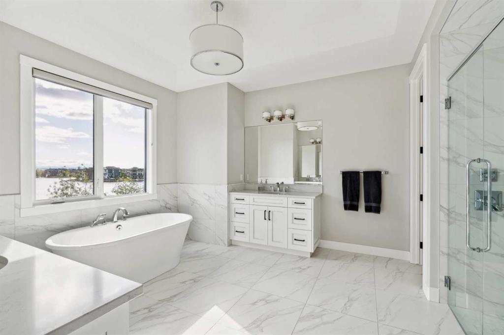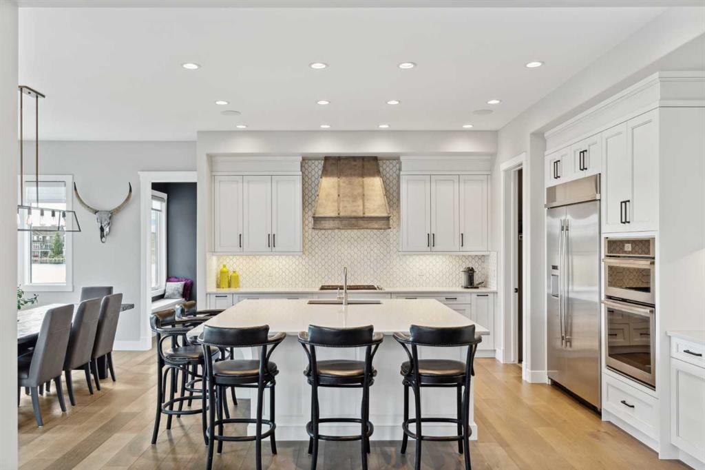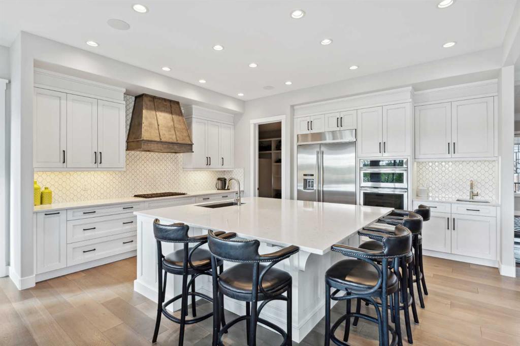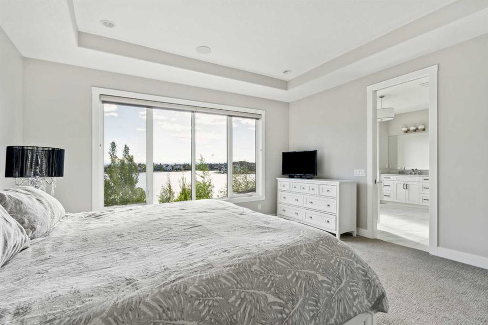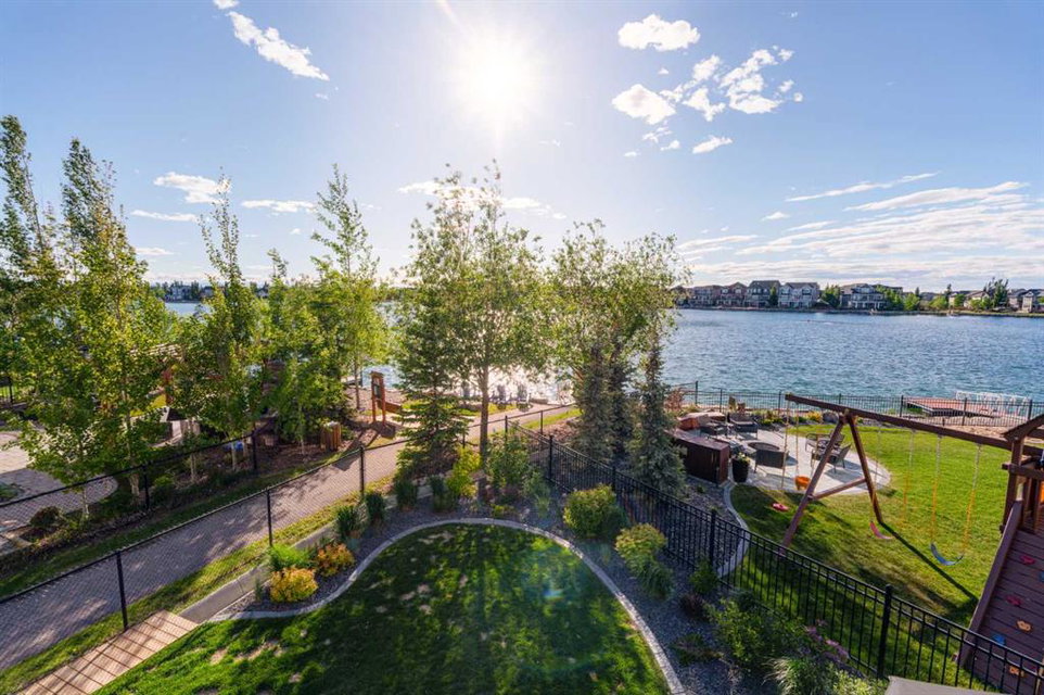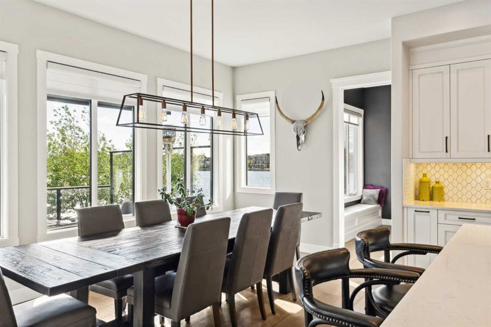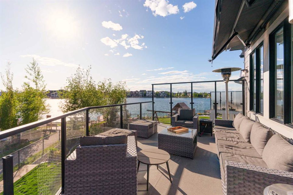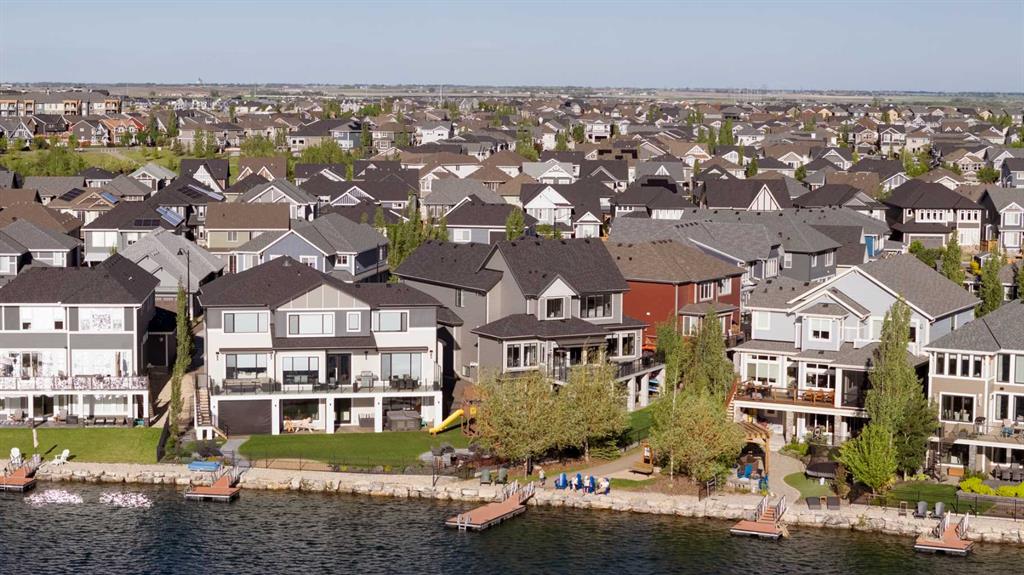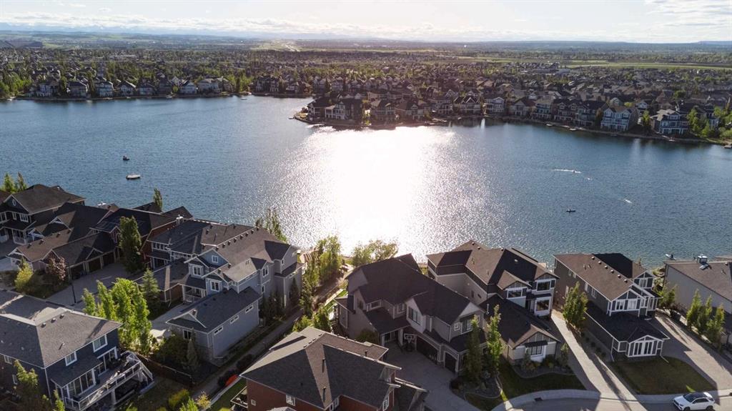 This exquisite Albi-built home on the lake in Auburn Bay has been perfectly designed for its incredible 8,650 sqft lot – offering breath-taking views and endless natural light with walls of southwest-facing windows on all three levels. With 4,800 sqft of living space, this stunning property features 4 bedrooms, 4.5 bathrooms, 3 living areas, 2 dens, a home gym and endless beauty throughout. Combining timeless elegance and modern luxury, this property offers a tranquil lifestyle but is also the perfect property for entertaining. The grand entrance instantly feels spacious with high ceilings and intelligent design offering views through the main level directly overlooking the lake. The gourmet kitchen has a suite of built-in Jenn-Air appliances, a custom-made Hammersmith range hood, large pantry, expansive central island with double seating and best of all, it overlooks the living and dining area with unobstructed lake views. The main living space is beautifully finished with a coffered ceiling, a central gas fireplace complete with natural stone and a wall of windows offering views and endless natural light. Completing the main level is the private office wisely positioned to maximize natural light and in a relaxing setting. The primary suite has been designed for optimal relaxation and beauty with lake and mountain views from both the bedroom and ensuite. A central bonus room, two large bedrooms each complete with their own walk-in closets and ensuites, and a large laundry room complete the second level. The sprawling walkout basement is an entertainer’s dream with space for a theatre area, games area and bar in addition to the home gym and den complete with drainage and 220V power for a future sauna. A fourth bedroom and full bathroom with walk-in tiled shower complete the lower level. The oversized triple garage has ample space for 4 vehicles and provides endless storage options. The upper-level balcony is complete with a retractable power awning with wind braces and offers SW facing unobstructed lake and mountain views. The more private lower level offers a covered hot tub space, living + dining space, a rock terrace with fire pit and plenty of green space on this coveted pie lot. The exterior has been extensively and intentionally designed with professional landscaping that maximizes the exterior living space and is complete with 7 zone irrigation. Added comfort and conveniences include 4 zone heating and cooling, Savant smart home system for built-in sound, temperature, security and more, garage gas and 220V rough-ins, exterior gas lines, water softener, hot and cold house bibs and more. As with every Albi-built home, no detail is overlooked – from the architecture to the ceiling details to built-in storage benches and a finished mechanical room, the quality and finish exude superior construction at every level. This meticulously maintained property epitomizes luxury and functionality with lakefront living. Start enjoying your dock access this summer!