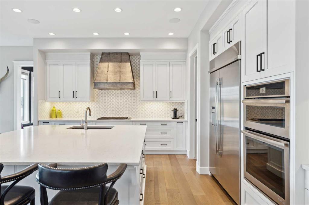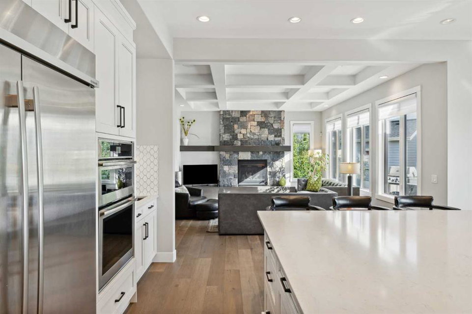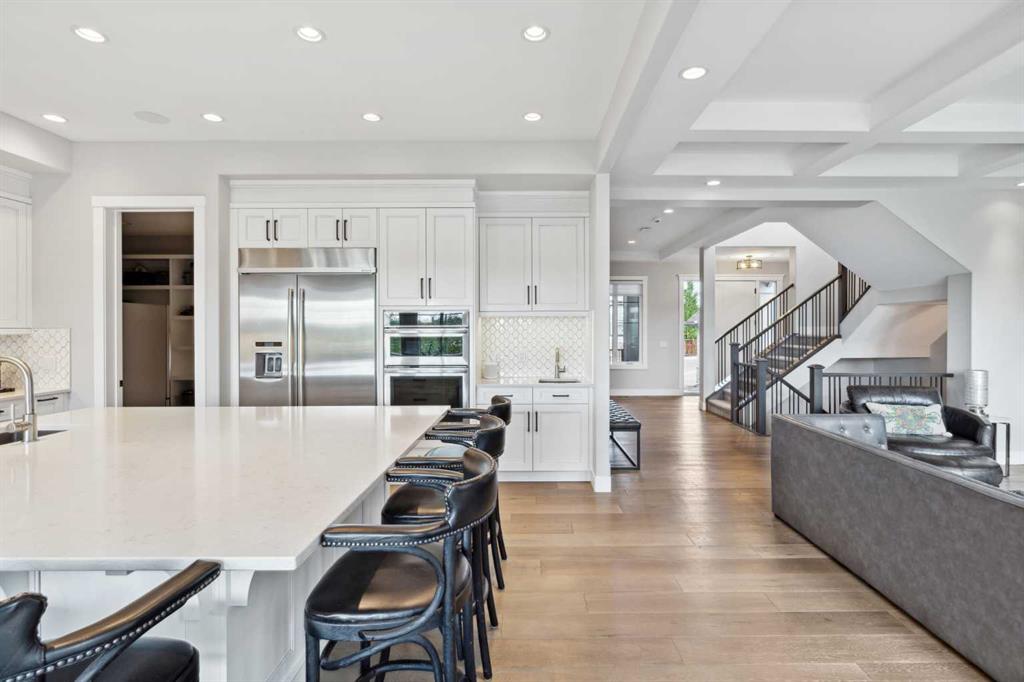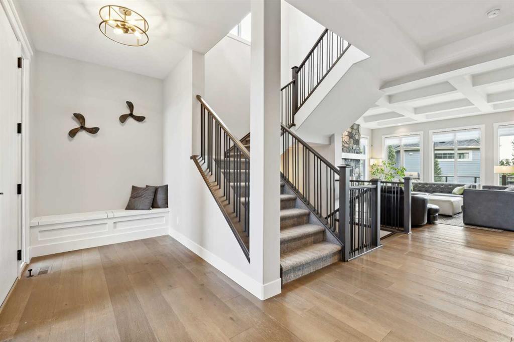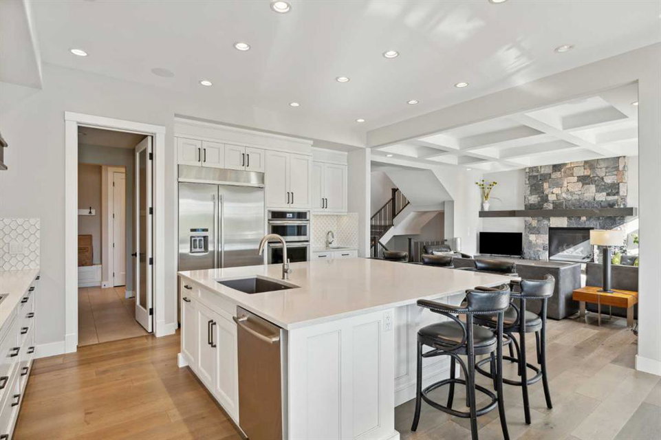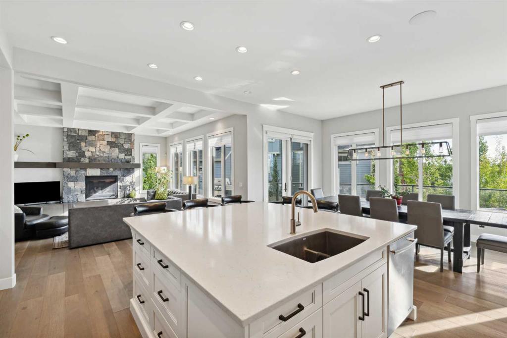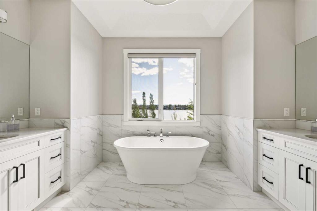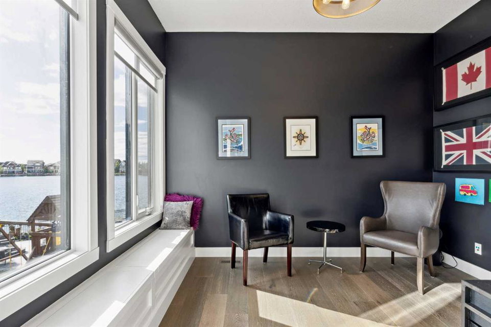 This exquisite Albi-built home on the lake in Auburn Bay has been perfectly designed for its incredible 8,650 sqft lot – offering breath-taking views and endless natural light with walls of southwest-facing windows on all three levels. With 4,800 sqft of living space, this stunning property features 4 bedrooms, 4.5 bathrooms, 3 living areas, 2 dens, a home gym and endless beauty throughout. Combining timeless elegance and modern luxury, this property offers a tranquil lifestyle but is also the perfect property for entertaining. The grand entrance instantly feels spacious with high ceilings and intelligent design offering views through the main level directly overlooking the lake. The gourmet kitchen has a suite of built-in Jenn-Air appliances, a custom-made Hammersmith range hood, large pantry, expansive central island with double seating and best of all, it overlooks the living and dining area with unobstructed lake views. The main living space is beautifully finished with a coffered ceiling, a central gas fireplace complete with natural stone and a wall of windows offering views and endless natural light. Completing the main level is the private office wisely positioned to maximize natural light and in a relaxing setting. The primary suite has been designed for optimal relaxation and beauty with lake and mountain views from both the bedroom and ensuite. A central bonus room, two large bedrooms each complete with their own walk-in closets and ensuites, and a large laundry room complete the second level. The sprawling walkout basement is an entertainer’s dream with space for a theatre area, games area and bar in addition to the home gym and den complete with drainage and 220V power for a future sauna. A fourth bedroom and full bathroom with walk-in tiled shower complete the lower level. The oversized triple garage has ample space for 4 vehicles and provides endless storage options. The upper-level balcony is complete with a retractable power awning with wind braces and offers SW facing unobstructed lake and mountain views. The more private lower level offers a covered hot tub space, living + dining space, a rock terrace with fire pit and plenty of green space on this coveted pie lot. The exterior has been extensively and intentionally designed with professional landscaping that maximizes the exterior living space and is complete with 7 zone irrigation. Added comfort and conveniences include 4 zone heating and cooling, Savant smart home system for built-in sound, temperature, security and more, garage gas and 220V rough-ins, exterior gas lines, water softener, hot and cold house bibs and more. As with every Albi-built home, no detail is overlooked – from the architecture to the ceiling details to built-in storage benches and a finished mechanical room, the quality and finish exude superior construction at every level. This meticulously maintained property epitomizes luxury and functionality with lakefront living. Start enjoying your dock access this summer!