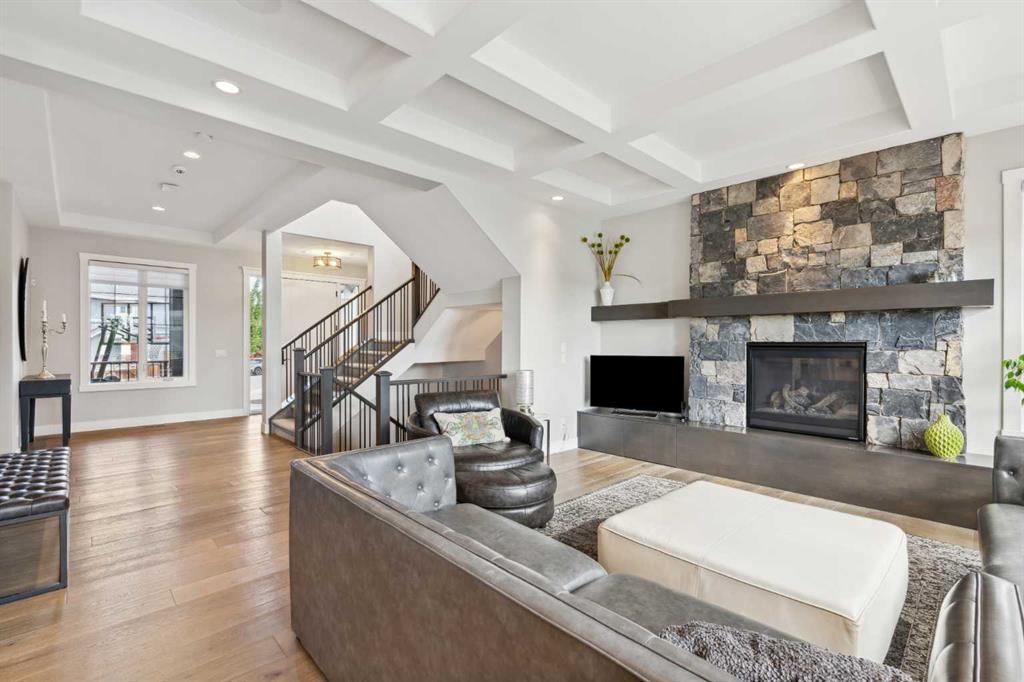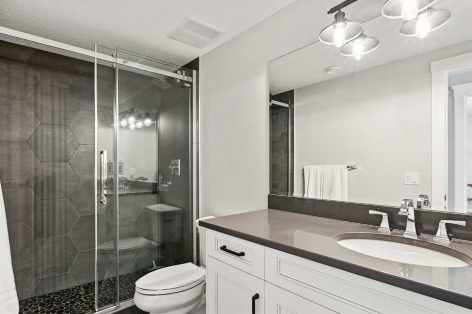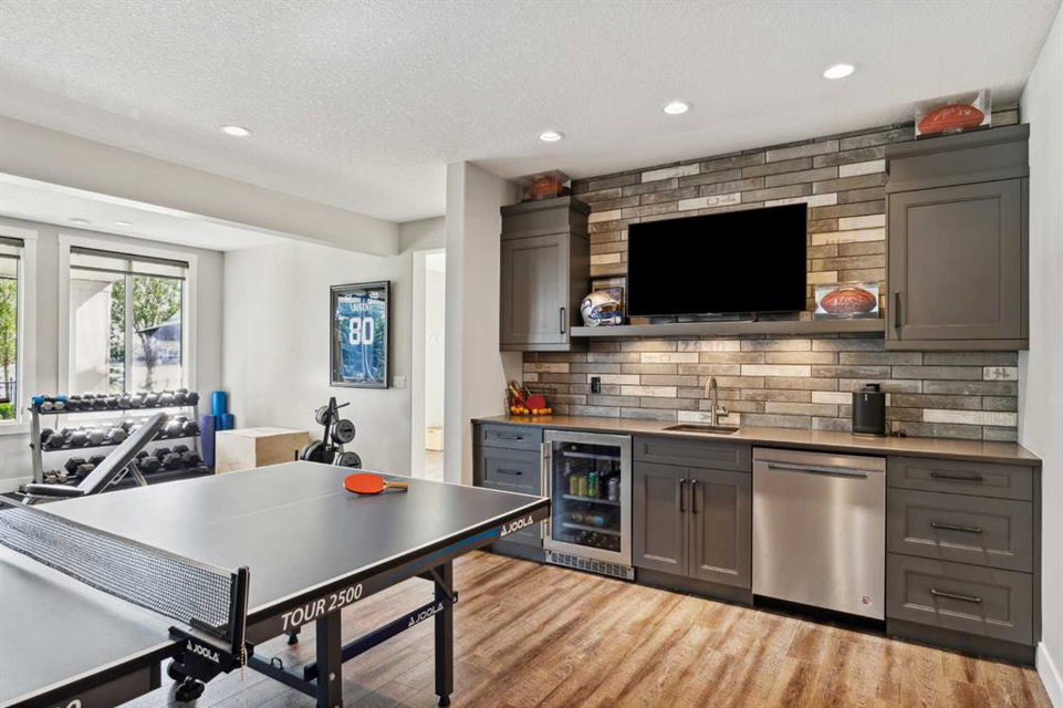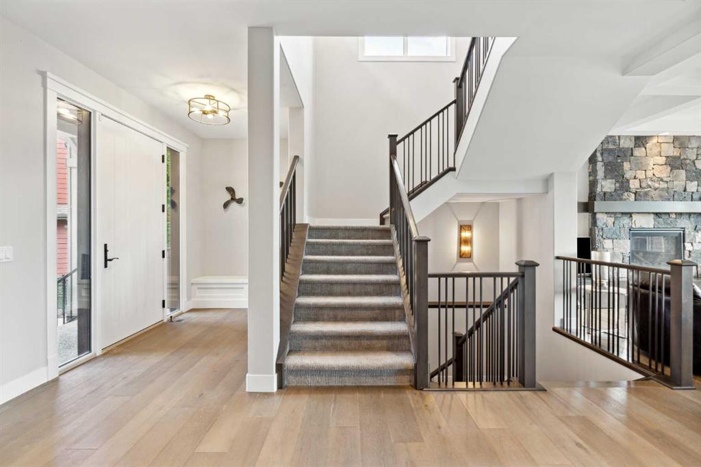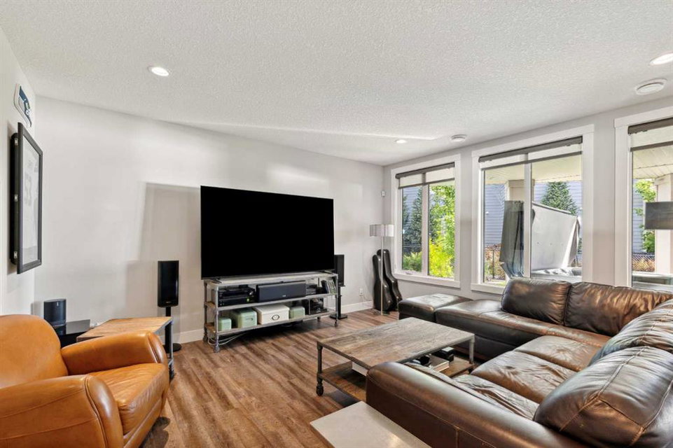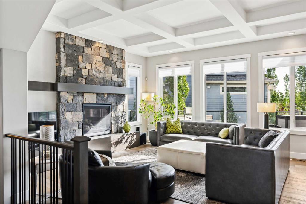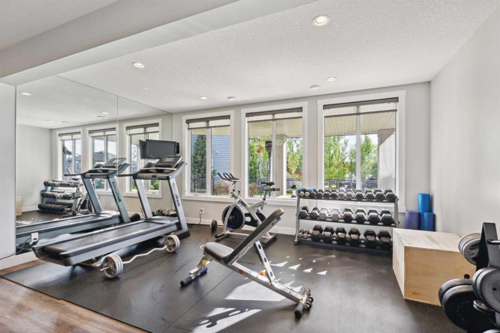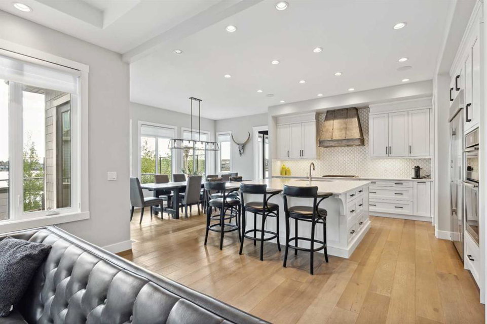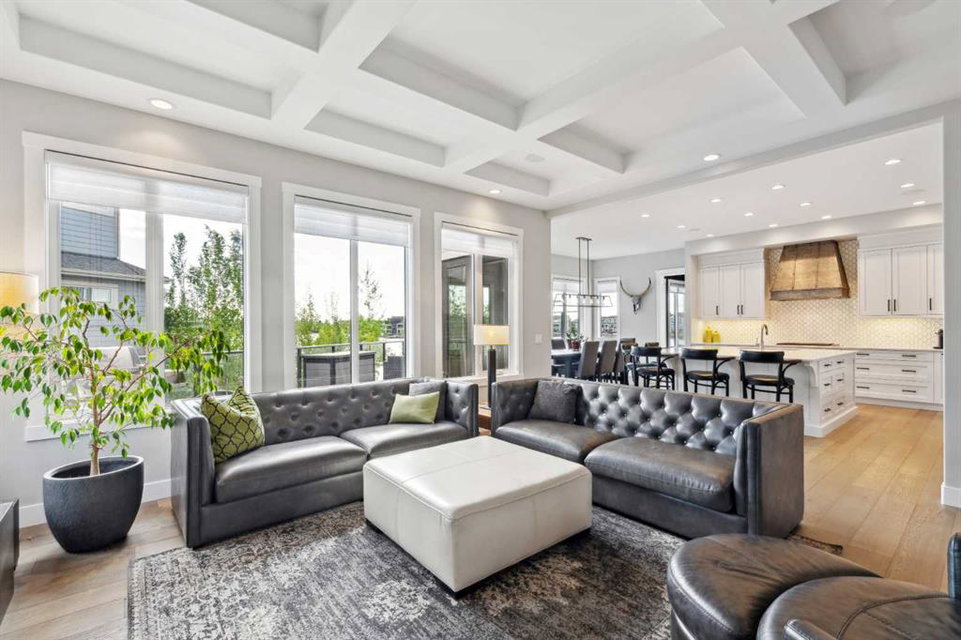 This exquisite Albi-built home on the lake in Auburn Bay has been perfectly designed for its incredible 8,650 sqft lot – offering breath-taking views and endless natural light with walls of southwest-facing windows on all three levels. With 4,800 sqft of living space, this stunning property features 4 bedrooms, 4.5 bathrooms, 3 living areas, 2 dens, a home gym and endless beauty throughout. Combining timeless elegance and modern luxury, this property offers a tranquil lifestyle but is also the perfect property for entertaining. The grand entrance instantly feels spacious with high ceilings and intelligent design offering views through the main level directly overlooking the lake. The gourmet kitchen has a suite of built-in Jenn-Air appliances, a custom-made Hammersmith range hood, large pantry, expansive central island with double seating and best of all, it overlooks the living and dining area with unobstructed lake views. The main living space is beautifully finished with a coffered ceiling, a central gas fireplace complete with natural stone and a wall of windows offering views and endless natural light. Completing the main level is the private office wisely positioned to maximize natural light and in a relaxing setting. The primary suite has been designed for optimal relaxation and beauty with lake and mountain views from both the bedroom and ensuite. A central bonus room, two large bedrooms each complete with their own walk-in closets and ensuites, and a large laundry room complete the second level. The sprawling walkout basement is an entertainer’s dream with space for a theatre area, games area and bar in addition to the home gym and den complete with drainage and 220V power for a future sauna. A fourth bedroom and full bathroom with walk-in tiled shower complete the lower level. The oversized triple garage has ample space for 4 vehicles and provides endless storage options. The upper-level balcony is complete with a retractable power awning with wind braces and offers SW facing unobstructed lake and mountain views. The more private lower level offers a covered hot tub space, living + dining space, a rock terrace with fire pit and plenty of green space on this coveted pie lot. The exterior has been extensively and intentionally designed with professional landscaping that maximizes the exterior living space and is complete with 7 zone irrigation. Added comfort and conveniences include 4 zone heating and cooling, Savant smart home system for built-in sound, temperature, security and more, garage gas and 220V rough-ins, exterior gas lines, water softener, hot and cold house bibs and more. As with every Albi-built home, no detail is overlooked – from the architecture to the ceiling details to built-in storage benches and a finished mechanical room, the quality and finish exude superior construction at every level. This meticulously maintained property epitomizes luxury and functionality with lakefront living. Start enjoying your dock access this summer!