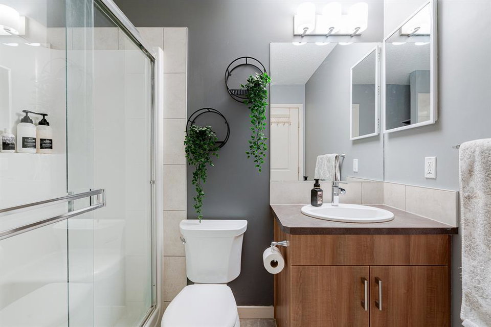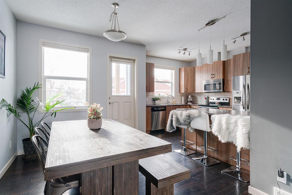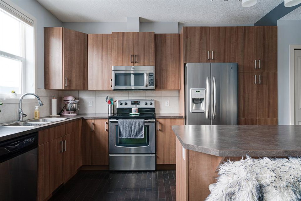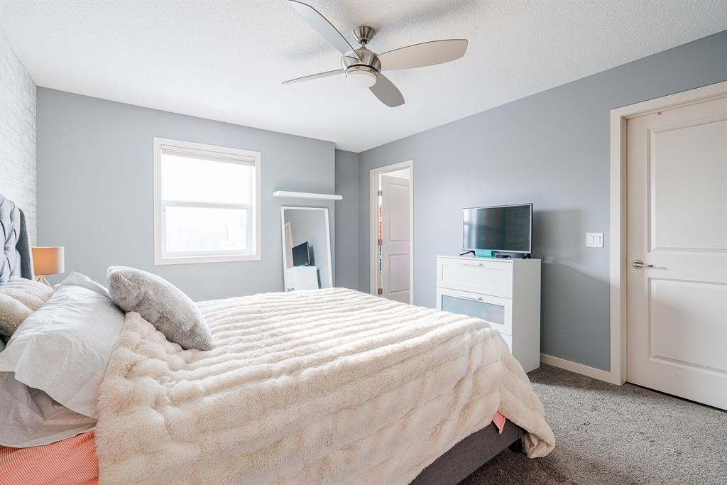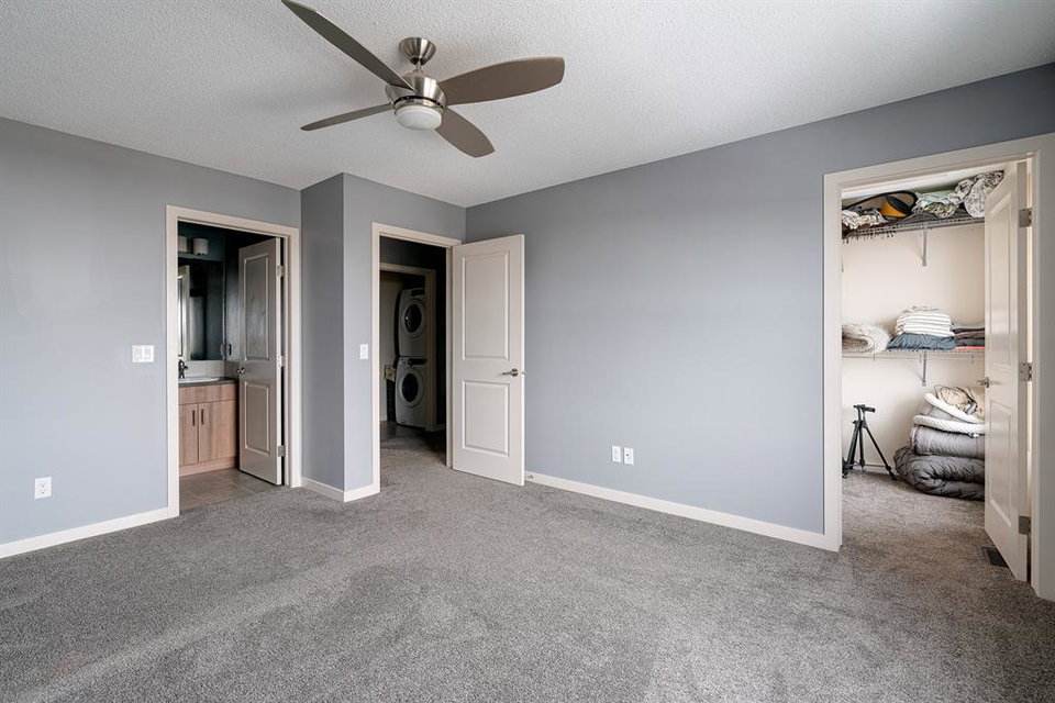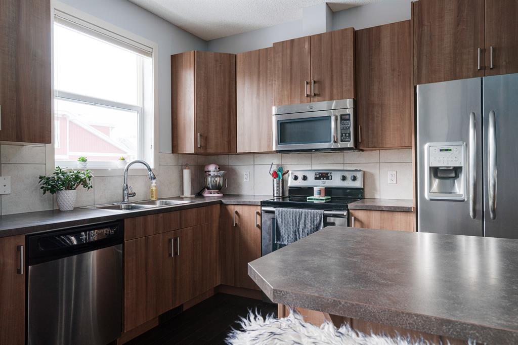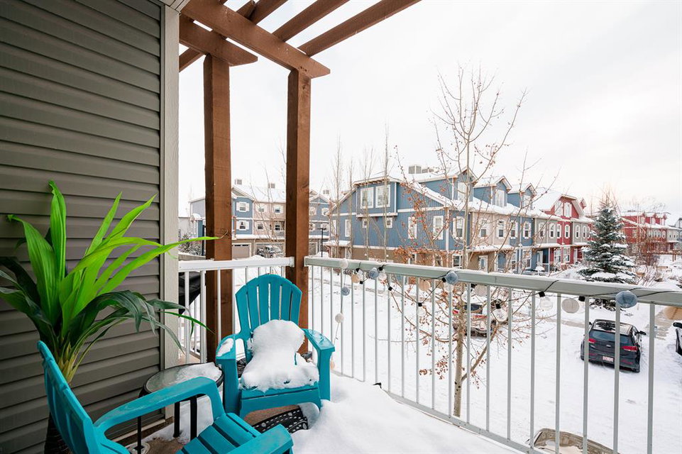 This Auburn Bay townhome is ideally located with easy access to parks, playgrounds and the many amenities of Auburn Bay and Mahogany. Featuring 2 bedrooms, 2.5 bathrooms + a flex space in addition to the main living and dining area and a double attached garage, this townhome is ideal for first-time buyers, small families and investors! Featuring over 1,600 square feet of developed space, this townhome has the space of a single family home. The bright and open main living area has a large window allowing natural light into the home creating a bight and open space. The full dining room overlooks the living room and kitchen creating the perfect space for entertaining or for those with young children. The home features hardwood flooring throughout the main level, a large kitchen with ample storage, a pantry and stainless-steel appliances. The main level is complete with a half bathroom and a private west-facing balcony (with gas line) making it the perfect place for enjoying a morning coffee or taking in the summer sun. The second level features two spacious primary bedrooms, each complete with their own walk-in closets and full en suites. Completing the upper level is laundry room with stacked washer and dryer for added convenience to daily living. The lower level of the home offers a large rec room that is great for a home office, gym or additional living area. The double attached garage will keep your vehicles and valuables safe all year. This home is perfect for down-sizers, first time buyers, young professionals and investors! Perfectly located, this bright and private townhome is fully move-in ready, ideal for those looking to grow their family in beautiful Auburn Bay – just minutes to schools, amenities, the lake and recreational facilities.