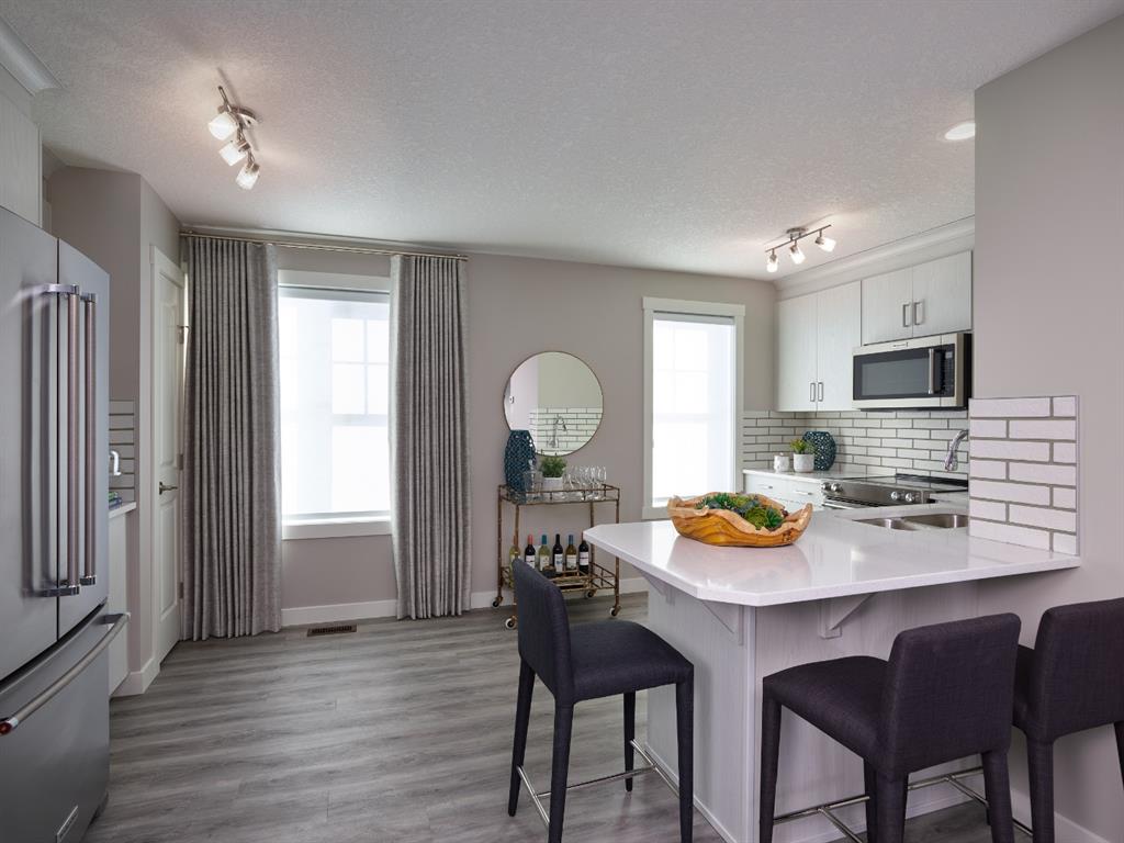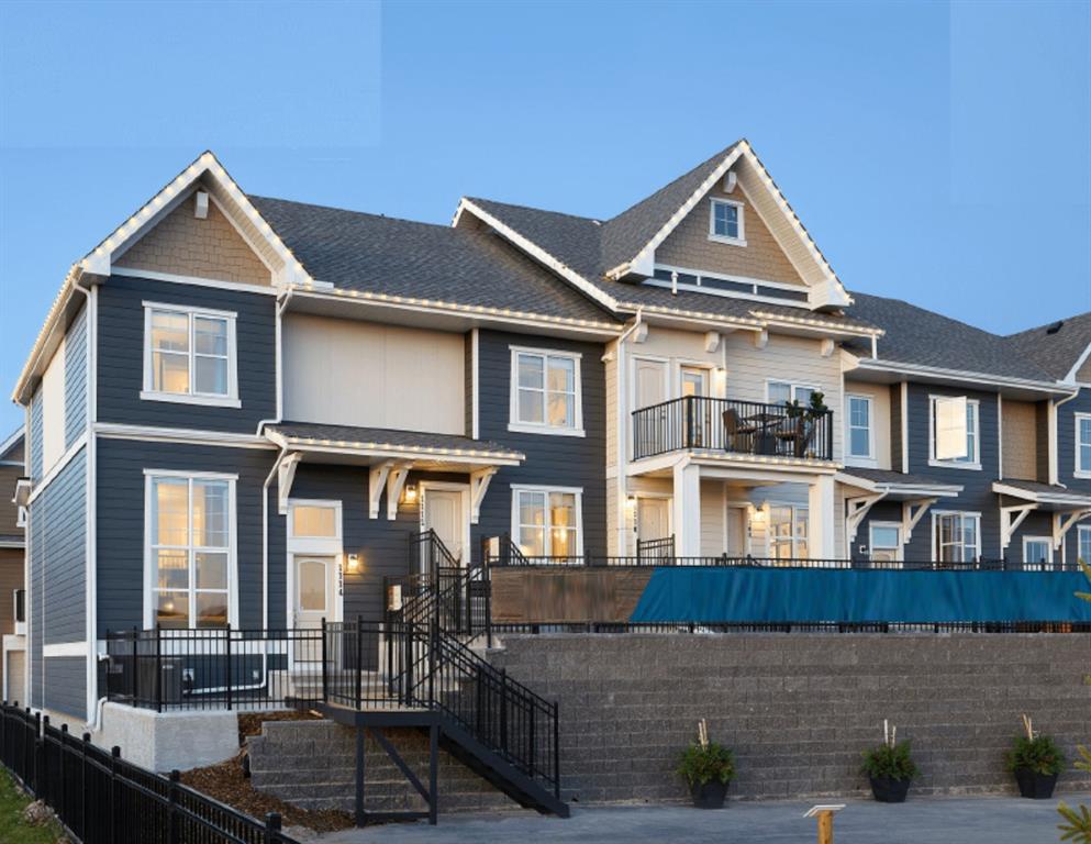 One of the LAST opportunities to own this Beautiful Home in the Estate Community of Riverstone! Ready to move in this SPRING & fully customizable. This END UNIT features a WOW factor floorplan, 2 Large Master Bedrooms, Front Patio with Garden and Private Double Attached Garage. The living room offers 13 ft ceilings, allowing extra natural light to flow through all day long & the large kitchen & dining room allows for spacious entertaining and ample storage. On the upper level, both master bedrooms include a walk-in closet & ensuite in addition to upper floor laundry. This home’s location allows you to enjoy maintenance-free living while having the luxury of Fish Creek Park right outside of your front door. Additionally, the new home includes Builder Warranty, Legal Fees, 1 Year Free Telus and comes with a 5 & 10 year New Home Warranty. *Please note, photos are from show home model and are not an exact representation of the property for sale. *Property is under construction.