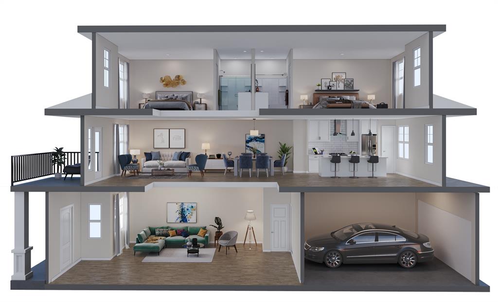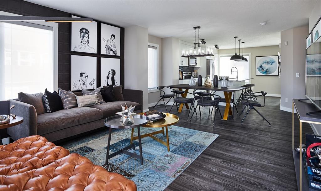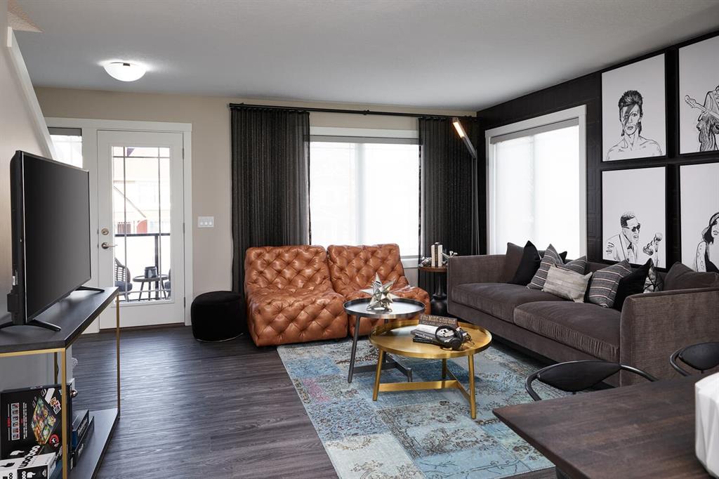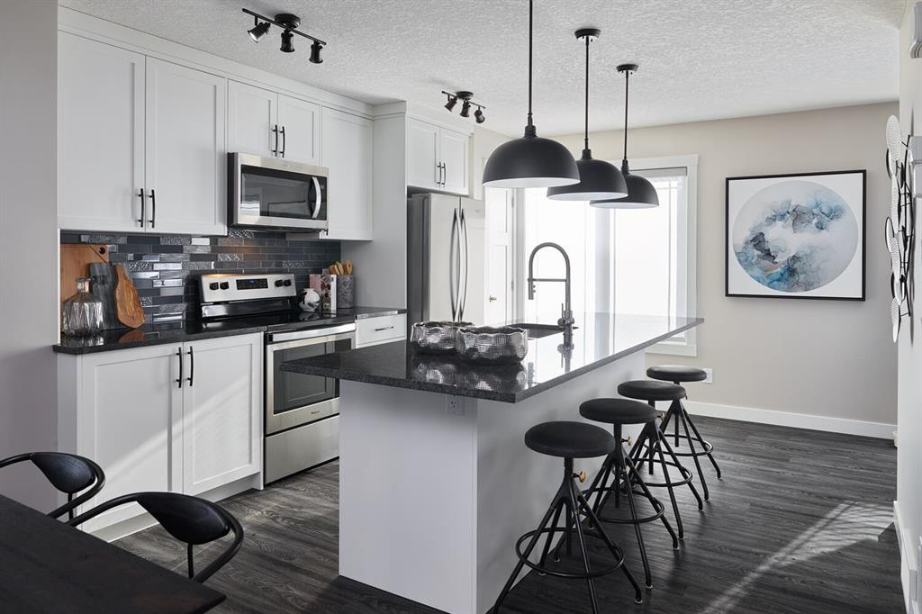 Offering 3 fully finished levels and zoned for commercial use on the lower level. 3 bedrooms, 4 bathrooms, an attached double garage and ample street parking right outside of your front door. This home boasts an unique opportunity to work from home and have a separate living space. Open concept main floor with large kitchen island flows nicely into the dining and living room and west facing balcony to enjoy the beautiful sunsets. Upstairs is 3 large bedrooms complete with a walk in closet and en suite bathroom, main bathroom and upper laundry. Zero exterior maintenance living will let you lock up and leave without a worry about snow removal or lawn cutting, this home is perfect for any season. Situated in the desired community of Riverstone, Fish Creek Park and the Bow river are just steps away. Additionally, this brand new home offers Builder Warranty along with a 10 year Alberta New Home Warranty. **Please note: the staged photos are taken from a showhome model and are not an exact representation of the property for sale.