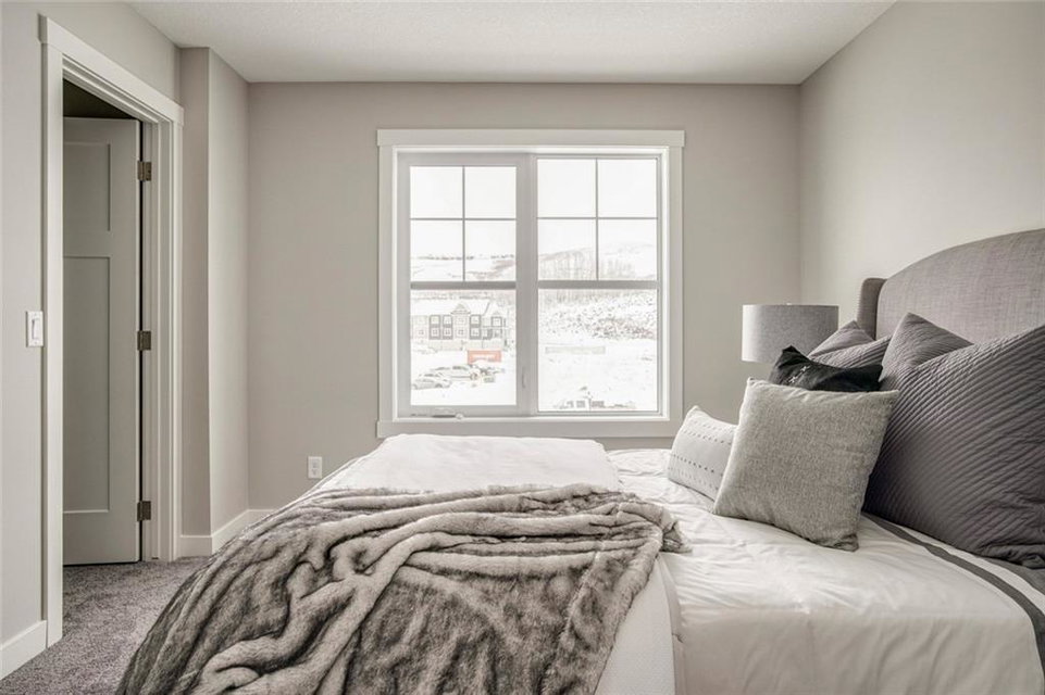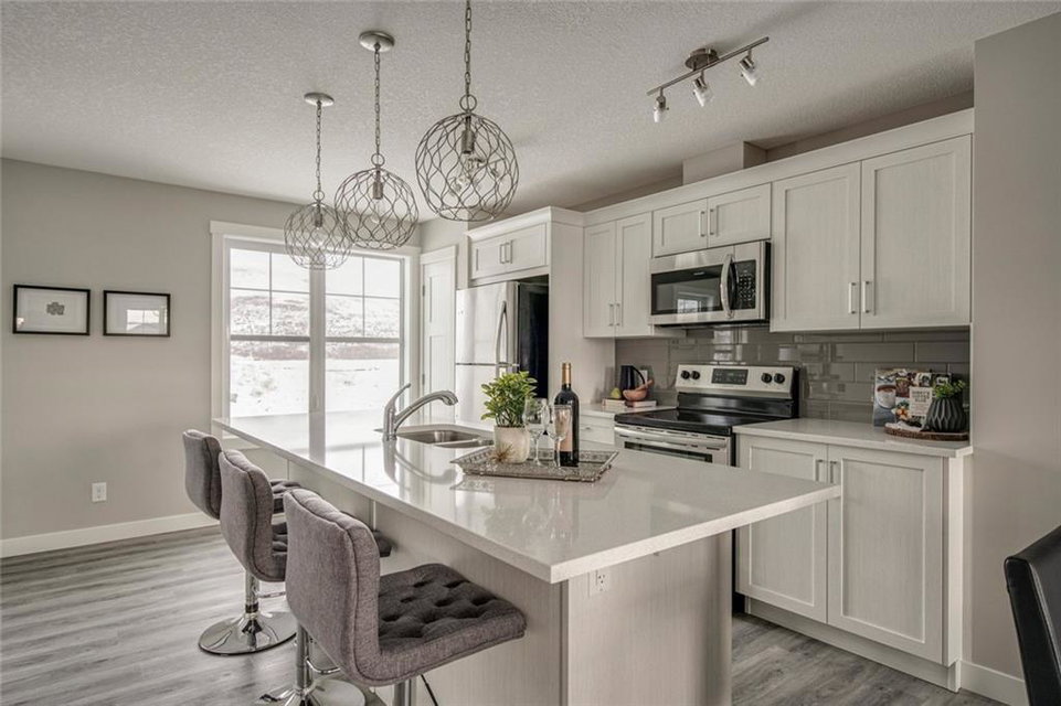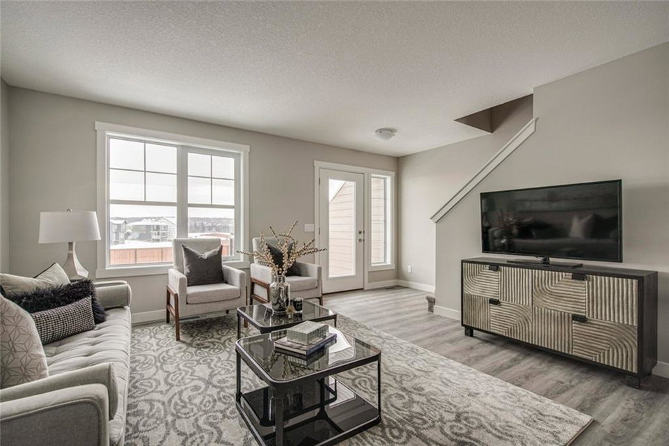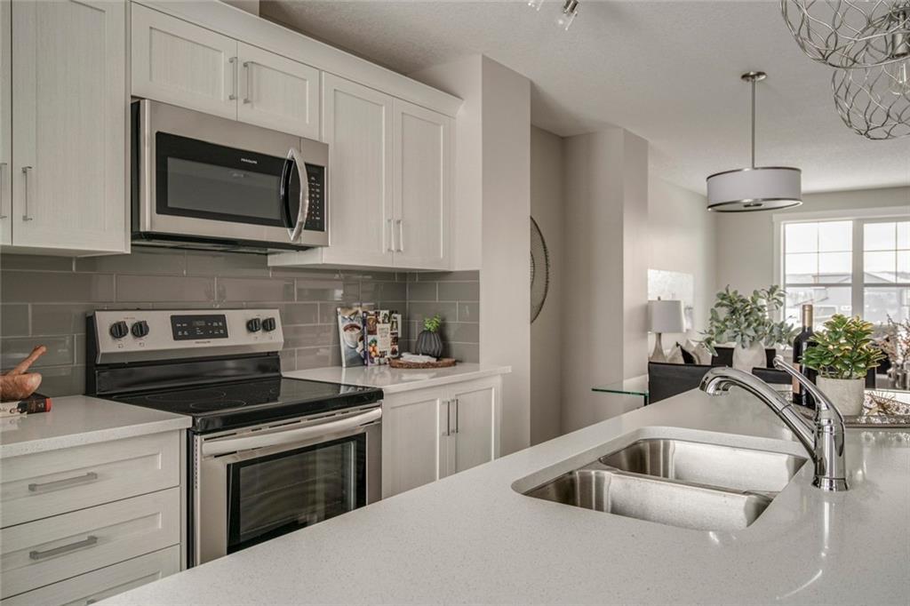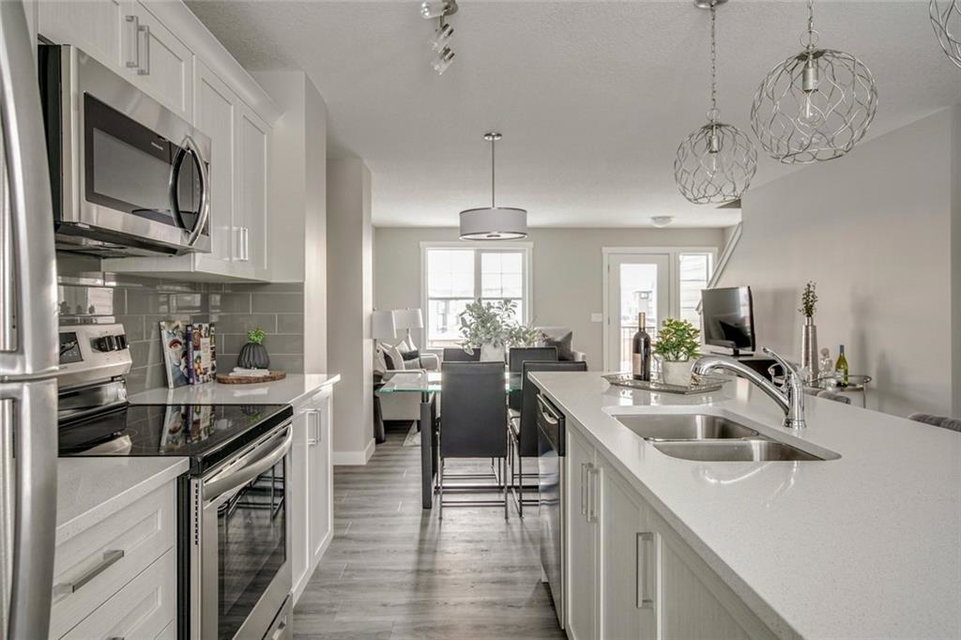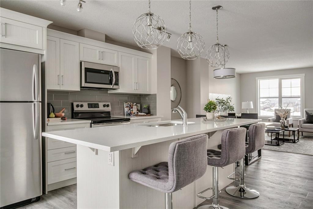 Attention DOWN-SIZERS! This Brookfield home comes WITH stainless steel appliances, washer/dryer, quartz counters throughout, industry leading warranties, 1yr free with Telus AND your legal fees covered. LIMITED TIME PROMOTIONAL MOVING PACKAGE INCLUDED. It has 3 finished levels, including office space, a double attached garage, extra parking out front, with the luxury of living in an estate community. Open main floor with large kitchen island flows into the dining & living room with a west facing balcony to enjoy beautiful sunsets. 2 master bedrooms with walk in closet & ensuite & a laundry room completes the upper level. Zero exterior maintenance living to lock up and leave without a worry! Surrounded by Green spaces, The Bow River and Fish Creek Park, Riverstone offers maintained walking/biking paths and parks and is Home to the Cranston RA Century Hall, the heart of the community with programs and events and only minutes away from South Health Campus, transit, restaurants, shopping and Brookfield YMCA!