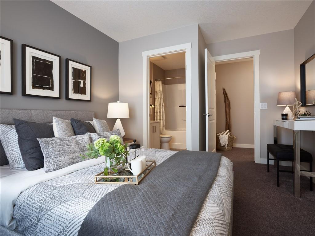 This beautiful end unit features a unique open concept main floor, contemporary designer colours, 2 large master bedrooms (each with their own ensuites) and a private double attached garage. The main living area offers 13 ft ceilings in the living room with 2 large windows, allowing natural light to flow through all day long. The gourmet kitchen and dining room allows for spacious entertaining. On the upper level, both large master bedrooms include a walk in closet and ensuite in addition to the upper floor laundry. Located in the desirable community of Riverstone in Cranston, this home’s location allows you to enjoy maintenance-free living while having the luxury of Fish Creek Park right outside of your front door. Additionally, the new home includes legal closing costs and comes with a 2 year builder warranty & 10 year Alberta New Home Warranty. *Builder offering free supply and install A/C with this home. *Please note: Photos are from show home and aren’t an exact representation of property for sale.