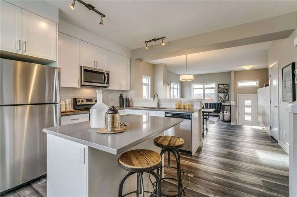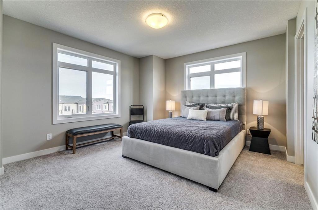 This Brookfield home offers EXCELLENT storage, WITH stainless steel appliances, washer/dryer, quartz countertops, industry leading warranties, 1 yr free Telus services AND your legal fees covered! Great value to be in this ESTATE COMMUNITY. Zero exterior maintenance living with a west facing patio & garden will let you lock up and leave without a worry. This open concept home offers ample living & dining space with kitchen island & rear balcony for that extra outdoor space. Upstairs boasts laundry, a large nook and 2 master bedrooms with walk in closets & ensuites. Surrounded by Green spaces, The Bow River & Fish Creek Park, Riverstone offers many maintained walking/biking paths & parks to enjoy, and is pet friendly! Riverstone is Home to the Cranston Residents Association, the heart of the community with programs and events and only minutes away from South Health Campus, transit, restaurants, shopping and the Brookfield YMCA!