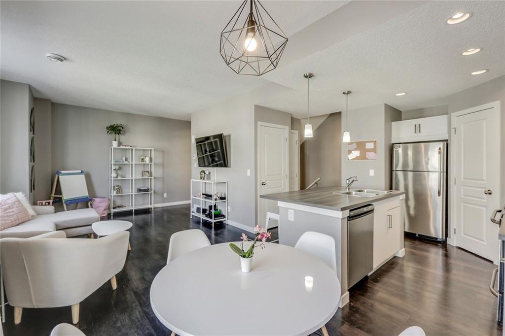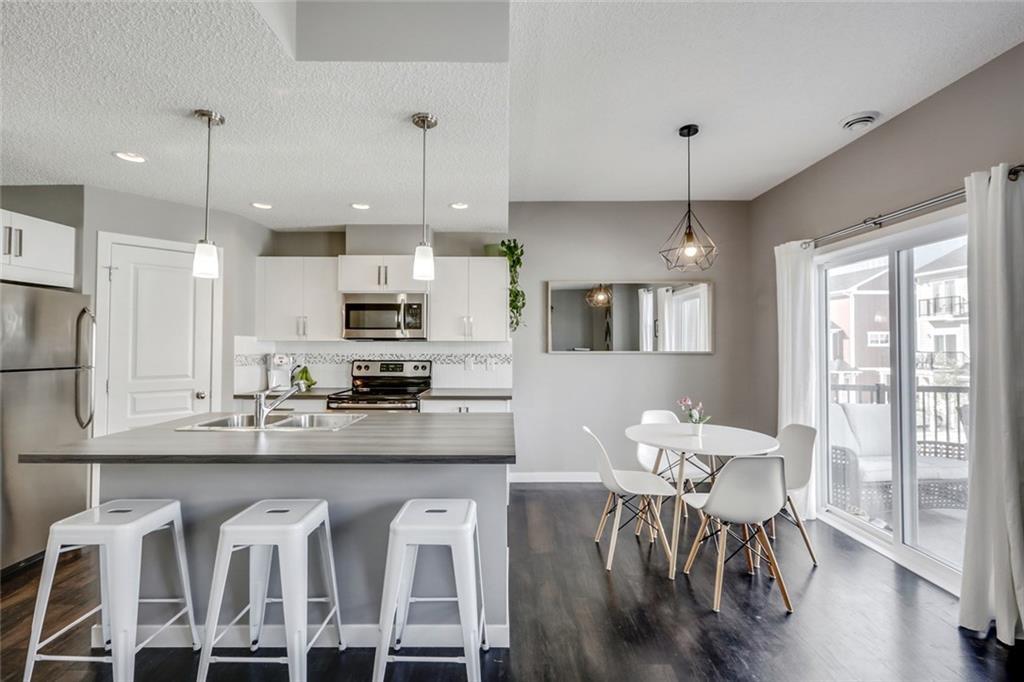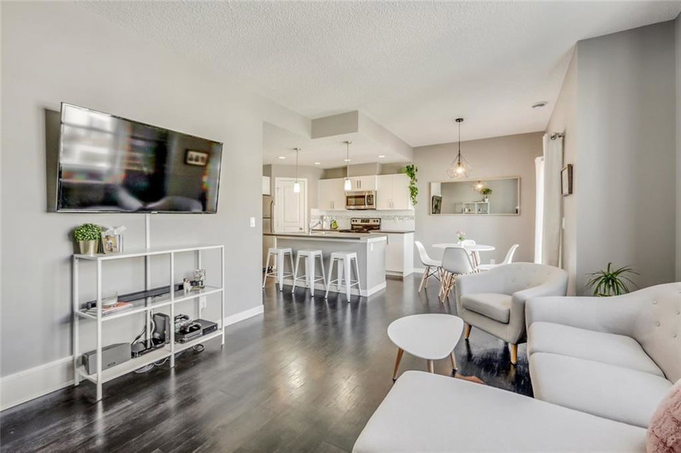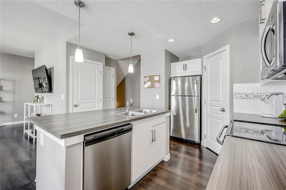 Immaculate 2 bed, 1.5 bath townhouse with attached garage incredibly well located within walking distance to countless nearby amenities. Boasting nearly 1,100 square feet of living space, this bright and open home offers the ability to purchase something virtually new without the price! The main living area is complete with a timeless white kitchen and a wall of WEST-facing windows that allow for natural light to flow through all day long. Pendant lighting over the island and custom lighting in the dining area add to its contemporary design. Resilient and timeless Vinyl Plank flooring flows throughout the main level – perfect for children and pets. The upper level is complete with two large bedrooms and the master is finished with a beautiful Juliet balcony. Soak up the sun on the West balcony, enjoy the comforts of the attached garage in the winter and take advantage of the convenience of walking to all daily amenities. Whatever the need, this like-new townhouse will fulfill it and is priced to sell!