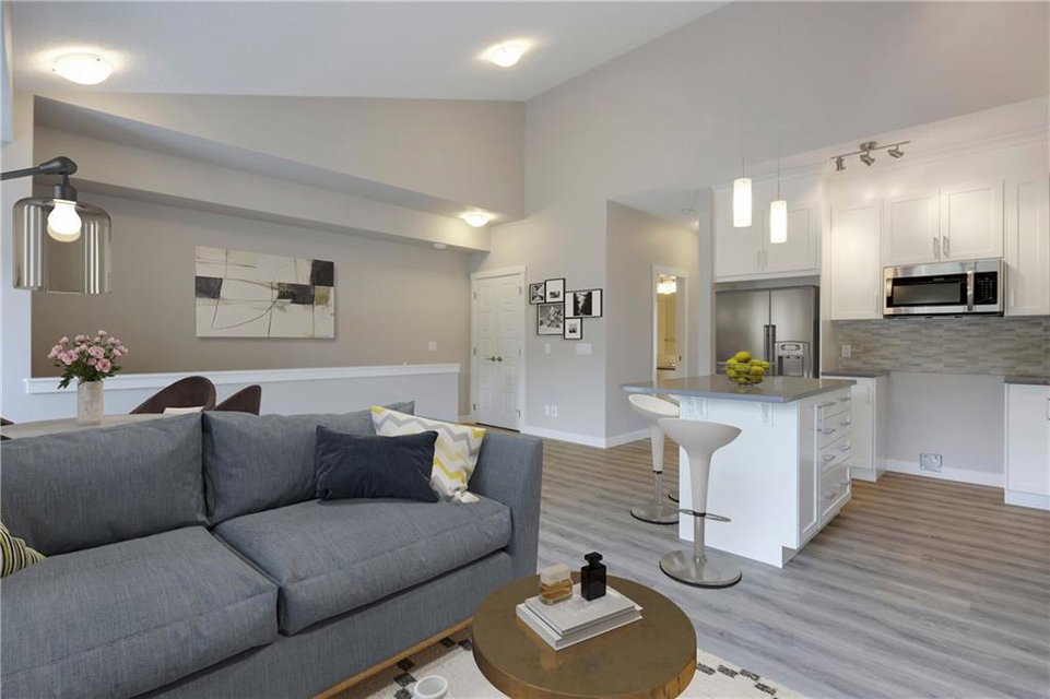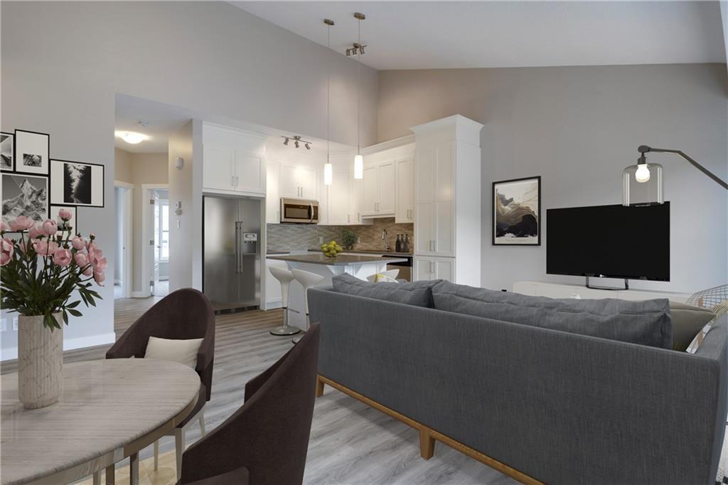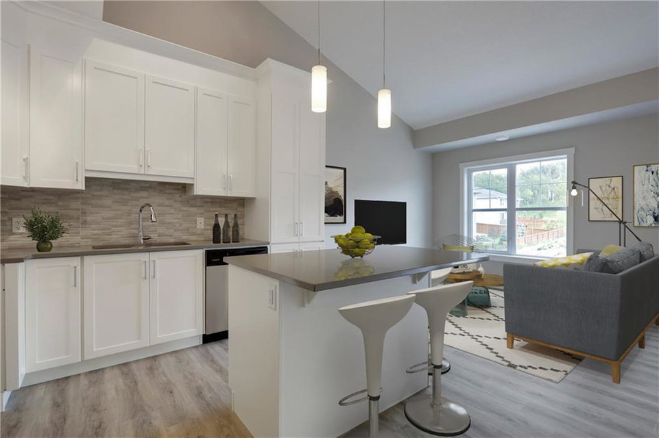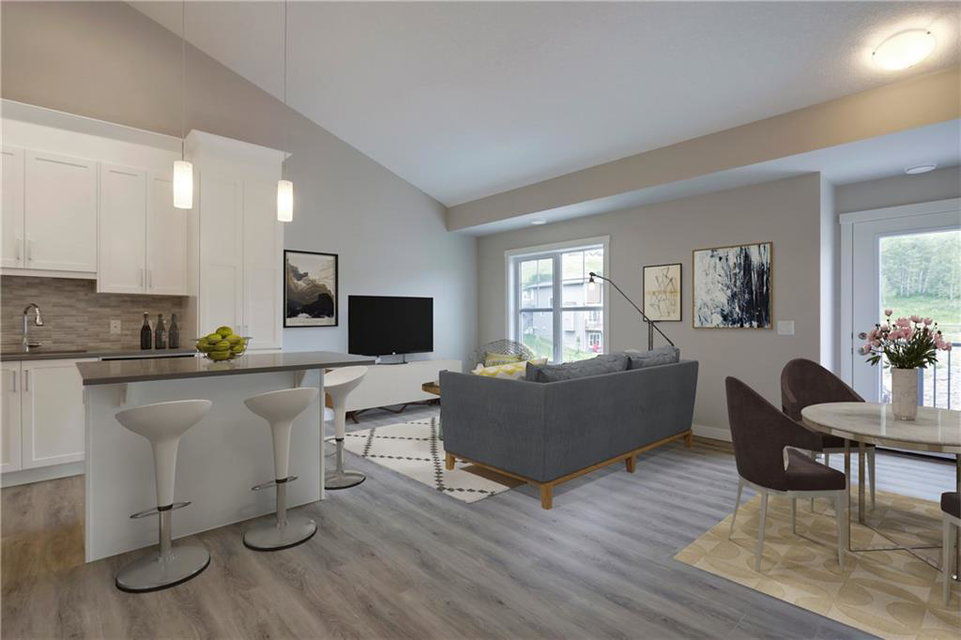 The VERY LAST ‘Ruby’ model available for 2019 possession! Apartment style living with the townhome luxuries of an attached garage, private balcony & private entrance! Welcome to the Ruby model in the Estate community of Riverstone! Amazing Vaulted Ceiling in the living room and the 9ft ceiling throughout the rest of the home, the entire place has a spacious feel. This 2 bedroom home comes with convenient main level laundry, open living space suited for various types of furniture and a large kitchen island perfect for entertaining. Located in the desirable community of Riverstone in Cranston, this home allows you to enjoy maintenance-free living while having the luxury of Fish Creek Park right outside of your front door. Additionally, it includes legal closing costs and comes with 2 Year Builder Warranty and a 10 year Alberta New Home Warranty. *Please note: Photos are virtually staged and are not an exact representation of the unit with furniture. However, finish (flooring, cabinets, paint) is as shown.
