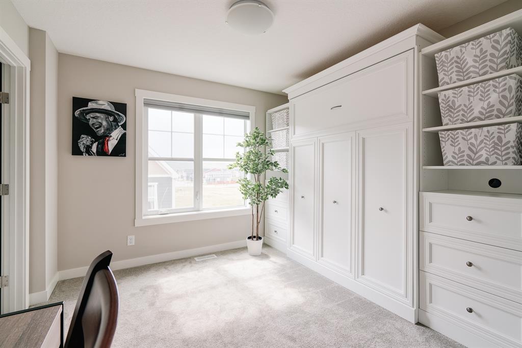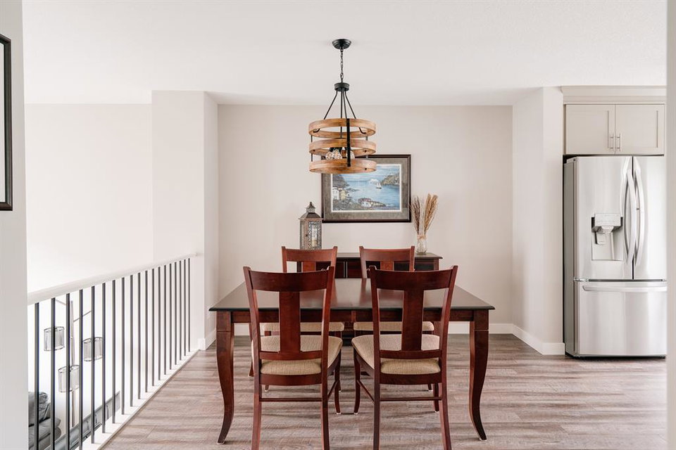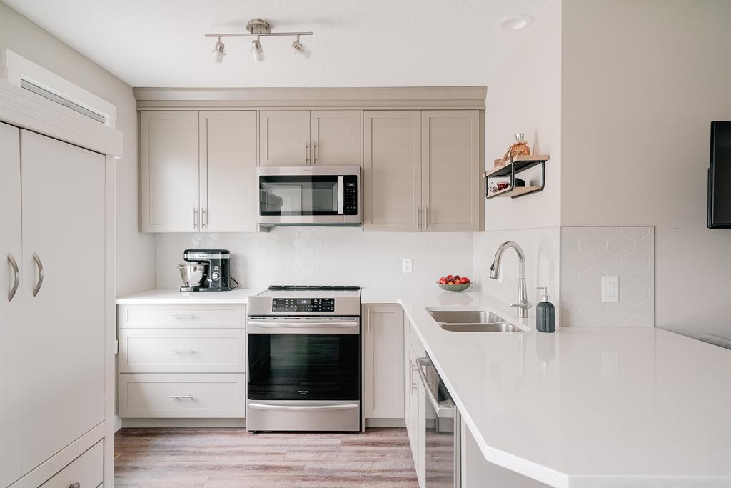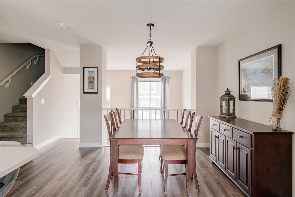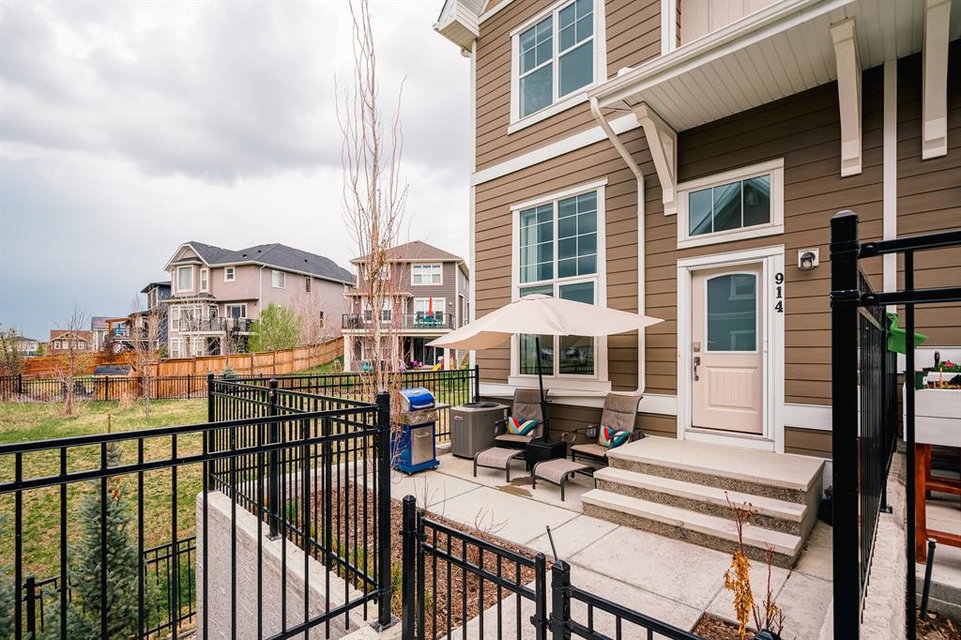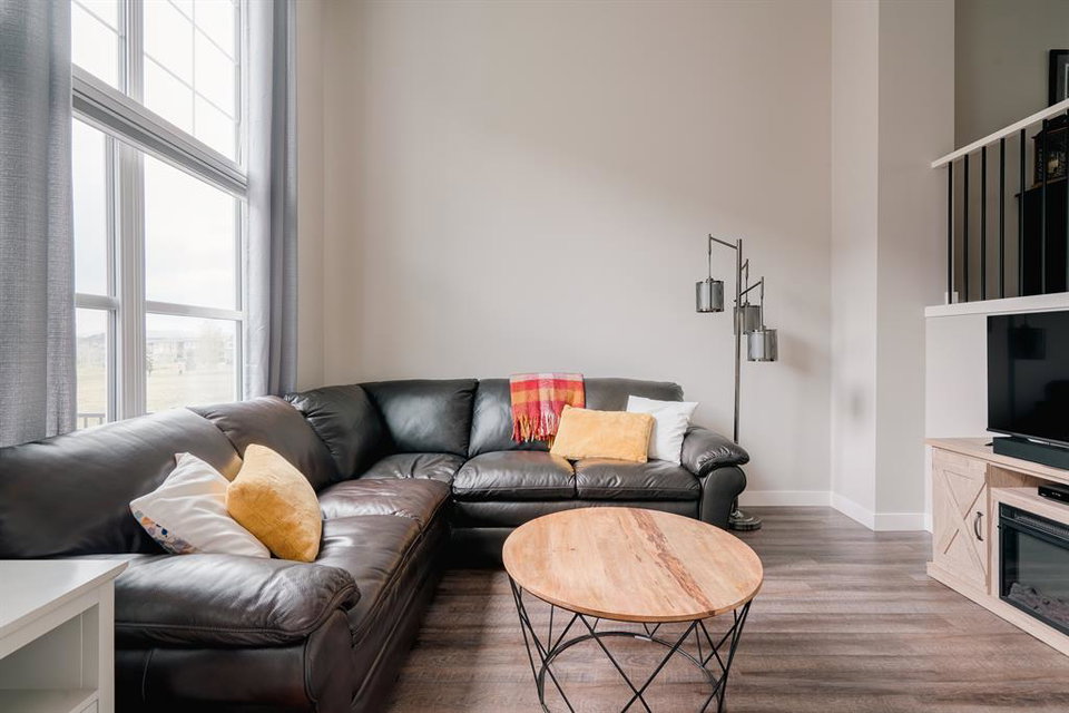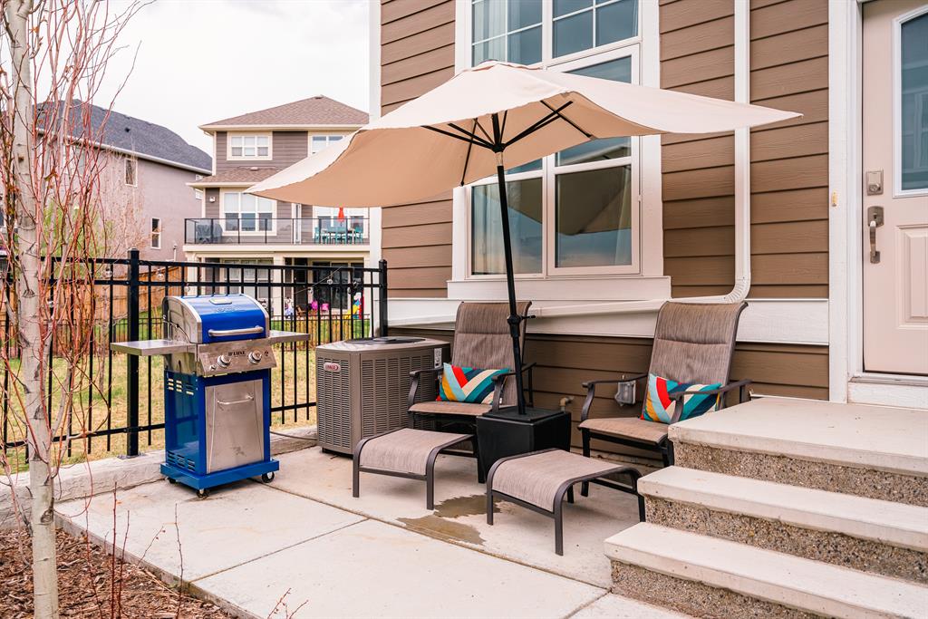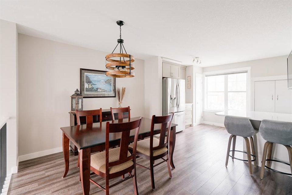 A stunning like-new townhouse located in the heart of Riverstone and siding onto a park! This beautiful end-unit townhouse is located at The Retreat, Riverstone’s newest townhouse development. Featuring over 1,100 square feet of living space on two levels, this home offers 2 primary bedrooms, both complete with their own ensuites, and a spacious living area with a sunken living room including 10′ windows and SW sunshine! The bright and sunny living room is located at the front entrance and has windows overlooking the park / green space. The timeless kitchen has cabinets to the ceiling, upgraded appliances, quartz countertops and extended countertop for additional seating. The kitchen overlooks the spacious dining area and the lower living room. Primary bedroom one is complete with a 3 pc ensuite with walk-in shower and primary bedroom two has a 4 pc ensuite. Walk-in closets with custom cabinetry completes both bedrooms! Murphy bed and shelving in bedroom two are included. The laundry space is conveniently located on the upper level. The basement level has plenty of additional storage space and could also be used as a workout space. The private double attached garage keeps your vehicles and valuables safe all year long! The sunny SW facing front patio is the perfect spot to relax while overlooking the park from an elevated and private setting. If the sunshine becomes too much, the central A/C will keep you cool and comfortable all summer long! This immaculate home has one of the best locations at the entire site and is fully move-in ready.