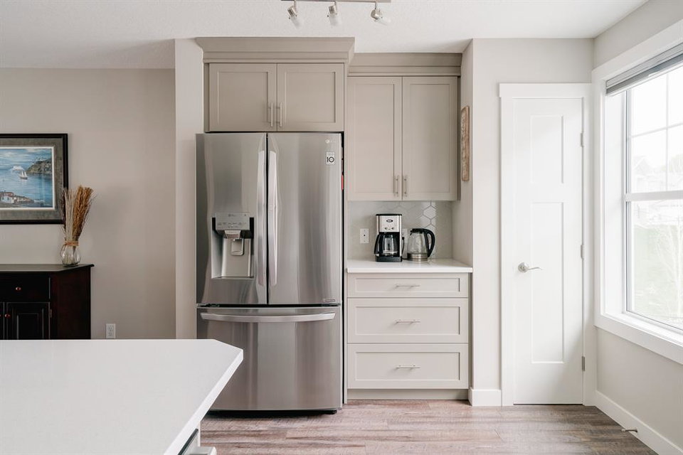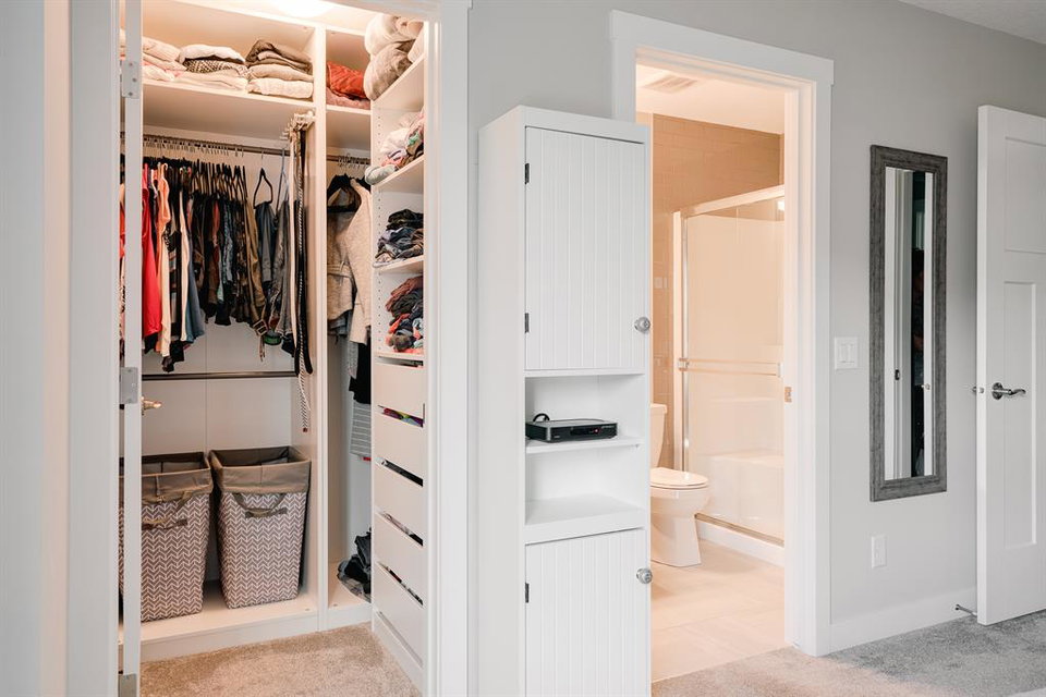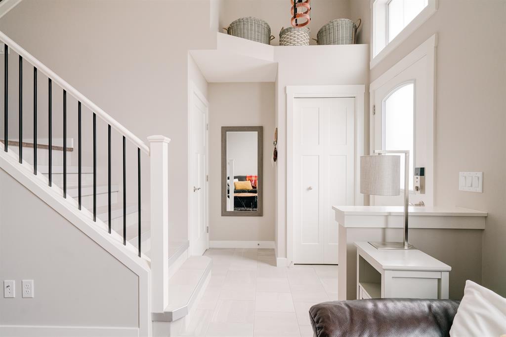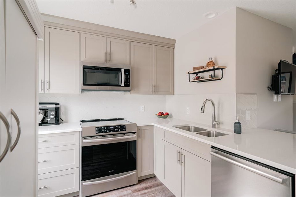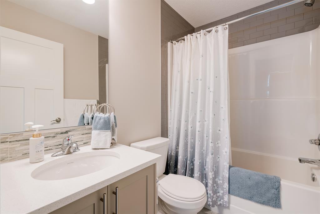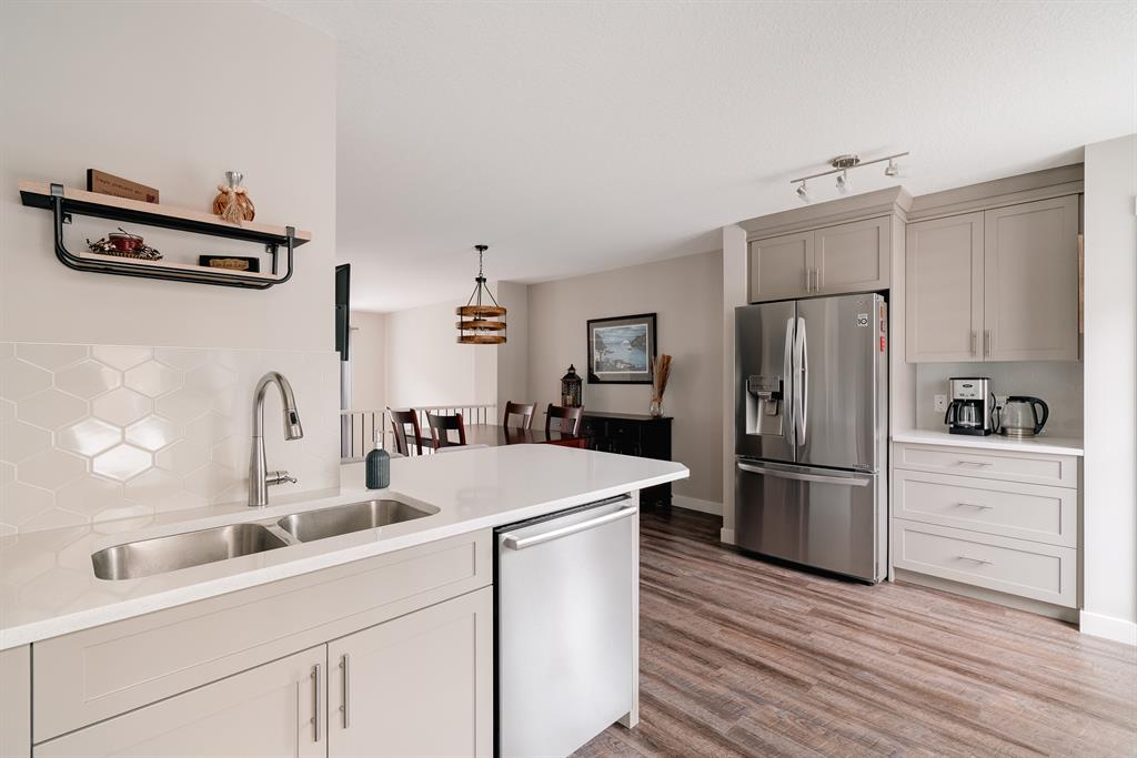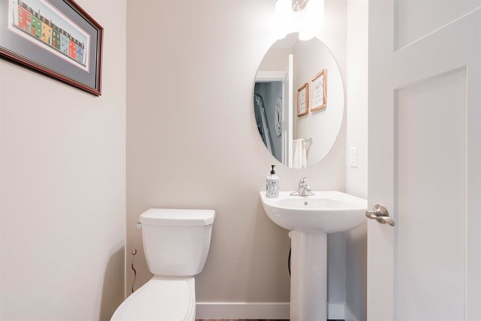 A stunning like-new townhouse located in the heart of Riverstone and siding onto a park! This beautiful end-unit townhouse is located at The Retreat, Riverstone’s newest townhouse development. Featuring over 1,100 square feet of living space on two levels, this home offers 2 primary bedrooms, both complete with their own ensuites, and a spacious living area with a sunken living room including 10′ windows and SW sunshine! The bright and sunny living room is located at the front entrance and has windows overlooking the park / green space. The timeless kitchen has cabinets to the ceiling, upgraded appliances, quartz countertops and extended countertop for additional seating. The kitchen overlooks the spacious dining area and the lower living room. Primary bedroom one is complete with a 3 pc ensuite with walk-in shower and primary bedroom two has a 4 pc ensuite. Walk-in closets with custom cabinetry completes both bedrooms! Murphy bed and shelving in bedroom two are included. The laundry space is conveniently located on the upper level. The basement level has plenty of additional storage space and could also be used as a workout space. The private double attached garage keeps your vehicles and valuables safe all year long! The sunny SW facing front patio is the perfect spot to relax while overlooking the park from an elevated and private setting. If the sunshine becomes too much, the central A/C will keep you cool and comfortable all summer long! This immaculate home has one of the best locations at the entire site and is fully move-in ready.