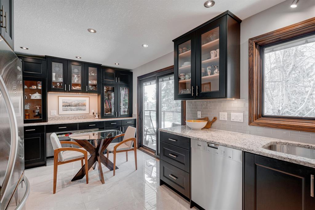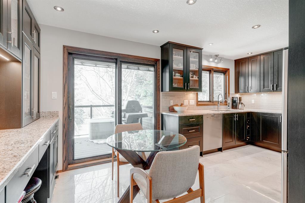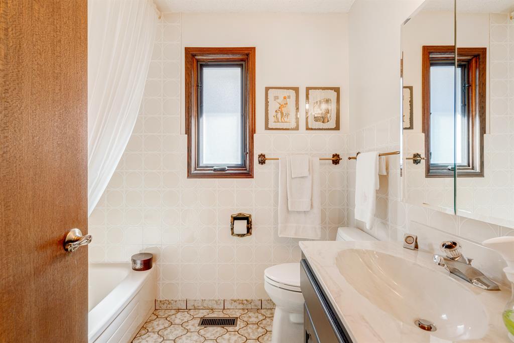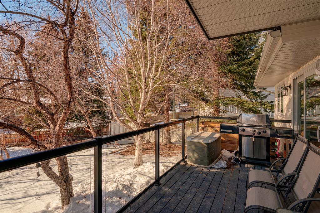 This beautiful detached home is located in the well-established and highly sought-after community of Edgemont and features 4 bedrooms, 3.5 bathrooms, and nearly 3,200 square feet of developed living space. The main level offers a spacious layout that allows in natural light throughout the morning and afternoon through the front, East-facing windows, and rear, West-facing windows. The generously sized living and dining area are perfect for entertaining friends and family and features hardwood and newer ceramic tile flooring. The kitchen was recently renovated in and is complete with stainless steel appliances, including a 4-burner gas stove and range hood, granite countertops, full-height cabinetry, a large built-in for extra storage, pot lights, and an additional informal dining area. The main floor is completed by an additional living area situated around a wood-burning fireplace, a 2-piece half-bathroom, a laundry room, and a mudroom at the garage entrance. The upper level offers 3 bedrooms and 2 full bathrooms. The spacious primary bedroom overlooks the huge backyard with its own private balcony and offers a newly renovated 3-piece ensuite bathroom and large walk-in closet. Two more bedrooms and a 4-piece bathroom complete the upper level. The lower level features an illegal suite that offers a fourth bedroom, a full 3-piece bathroom, separate laundry, a large rec. room with a wood-burning fireplace, a den, which would make for the perfect home office, and plenty of storage including a large cold storage room that is perfect for a winemaker or hobbyist. Situated on almost 6,000 square feet of land, this property offers a spacious West-facing backyard with a newer deck and no neighbors behind. The stunning and mature backyard overlooks a green space adding tranquility and privacy all year long. This home is completed by an attached, front-facing double garage featuring a newer garage door and ample storage space. Additional upgrades include new Pella windows throughout, a newer roof, two newer high efficiency furnaces, hot water on demand, a water softener, water filtration system, 4 zone irrigation and central vacuum. Centrally located in Edgemont, this home is within walking distance of numerous parks, greenspaces, and nearby amenities. This meticulously cared for property has been incredibly maintained for and is move-in ready.