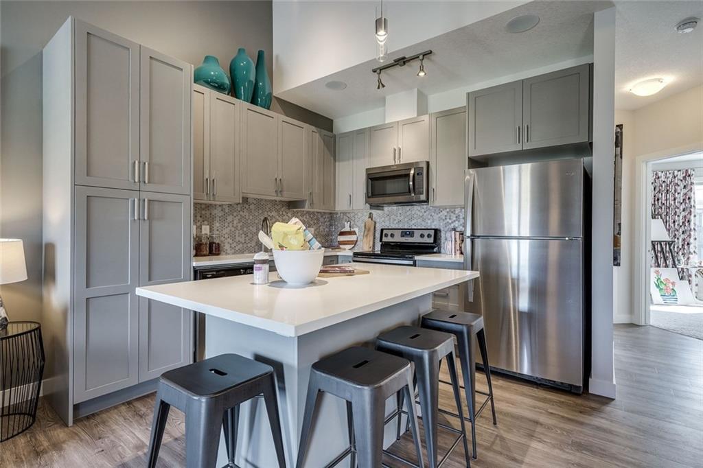 Don’t miss out on your last opportunity to own a Ruby loft in the Link at Symons Gate! This show-home from Brookfield Residential is fully loaded with amazing upgrades. The Ruby floorplan has high vaulted ceilings in the great room which opens up the living space and makes a grand impression. The balcony off of the front has room for your BBQ or to sit and look out over the green-space in front of your home. The attached garage will keep your vehicle safe and warm in the winter so you don’t have to park outside. Your kitchen has beautiful white quartz countertops and upgraded mosaic backsplash with a contemporary grey cabinets and a full stainless steel Whirlpool appliance package. This home also comes with air-conditioning already installed as well as it’s own speaker system throughout the house. *Legal fees and Alberta New Home Warranty included.