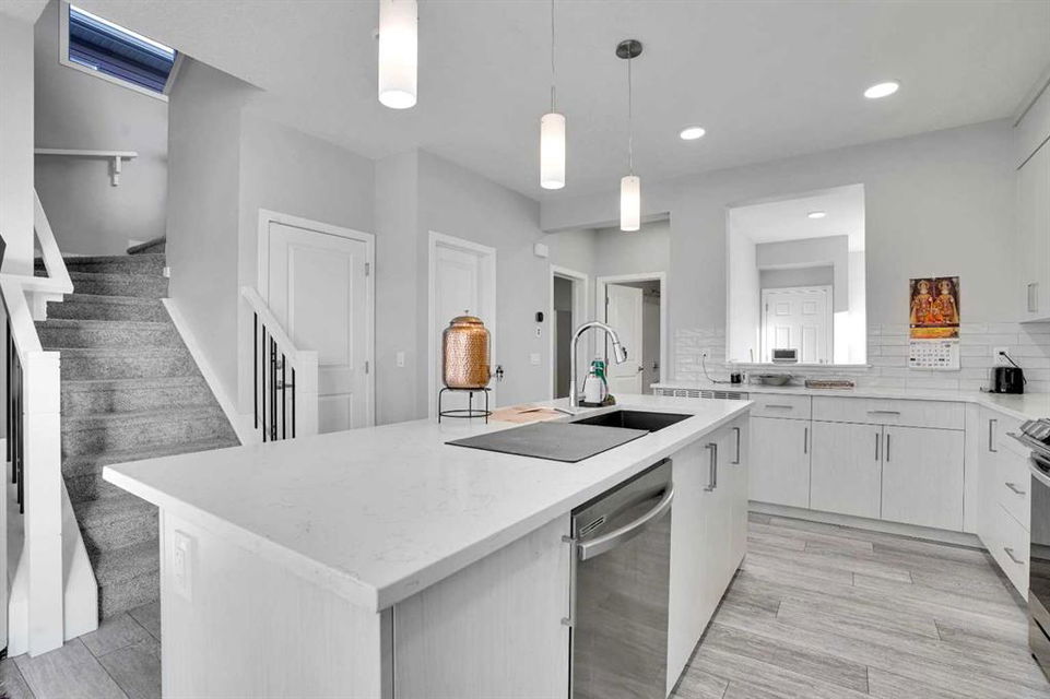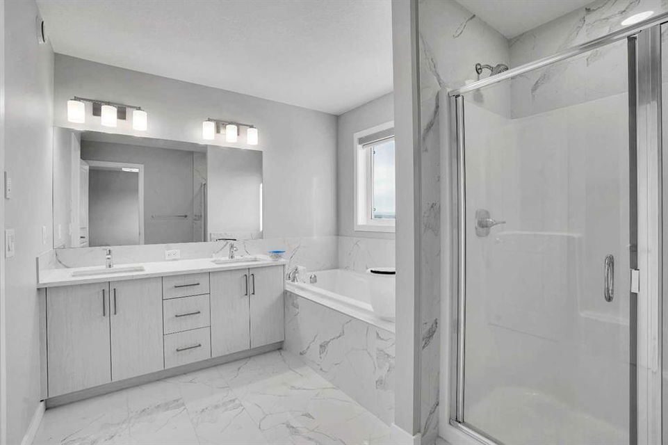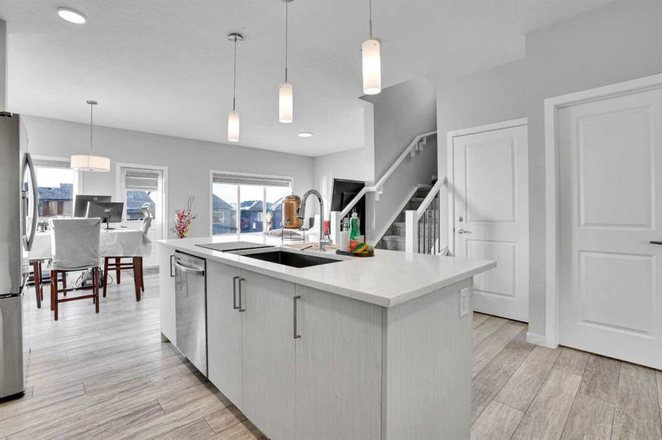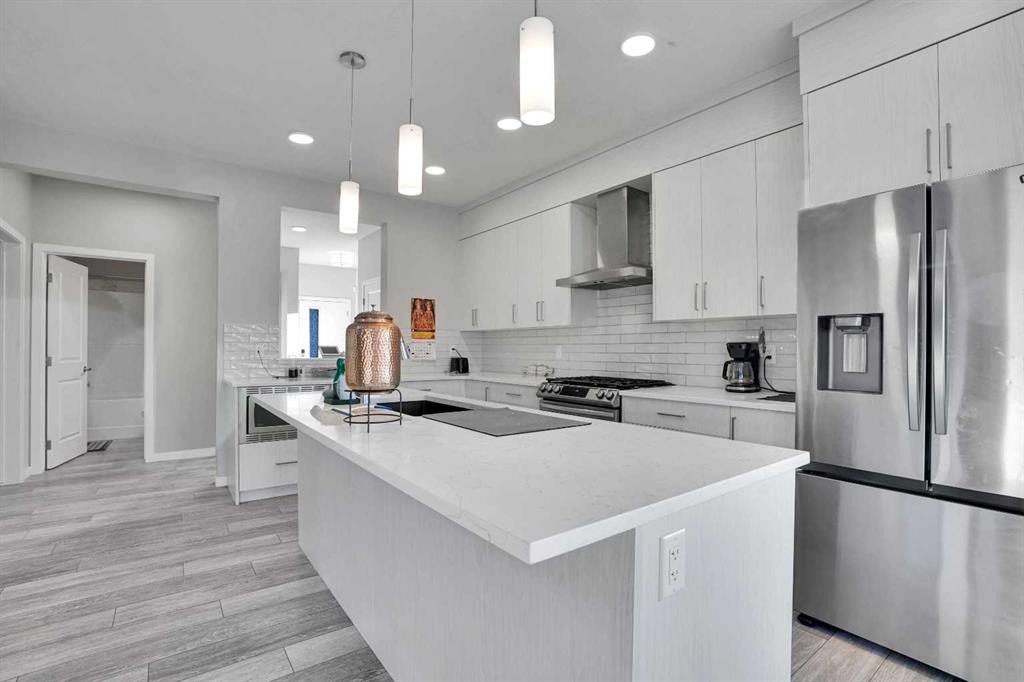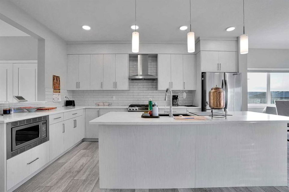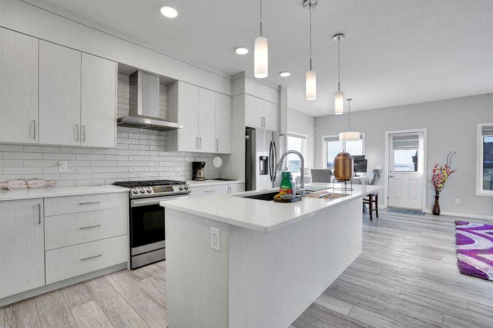 Experience modern luxury living in the Livingston area with the Collingwood model Excel home, featuring high-end finishes and a legal walkout basement suite. The unique exterior is a showstopper, complemented by a modern, functional design and contemporary finishings. Flooded with natural light, this home boasts beautiful finishings throughout. Located in the most sought-after part of Livingston, this excel-built home offers ample square footage and private views. Inside, a bright and spacious living room/dining room awaits, perfect for entertaining, alongside a chef's dream kitchen with upgraded stainless steel appliances, quartz counters, soft-close cabinetry, a chimney-style hood fan, a built-in microwave. The functional floor plan includes a flex room, four bedrooms plus a bonus room on the upper level, ideal for family living. The primary bedroom features a 5-piece ensuite and large walk-in closets, while the other bedrooms share a 4-piece bath. A conveniently located laundry room is just off the bonus room. The custom-built home also includes a two-bedroom open-concept legal suite with stainless steel appliances, quartz counters, and in-suite laundry. Registered with the city, the suite meets all legal requirements, including separate furnace and water tank. Additional highlights include the Alberta New Home Warranty, a newly built deck, upgraded pot lights, and air conditioning. Nestled in Livingston's heart, this incredible home is minutes from major shopping centers. Enjoy the epitome of luxury living!